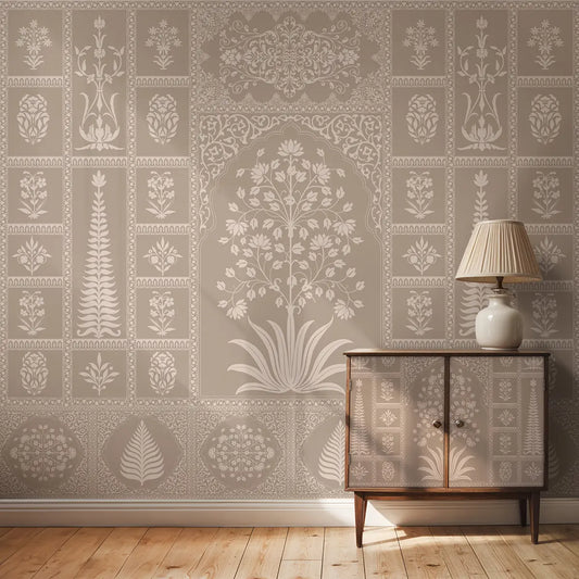 Papier peint de luxe indien Kashi Reverie aux couleurs sépia dorées