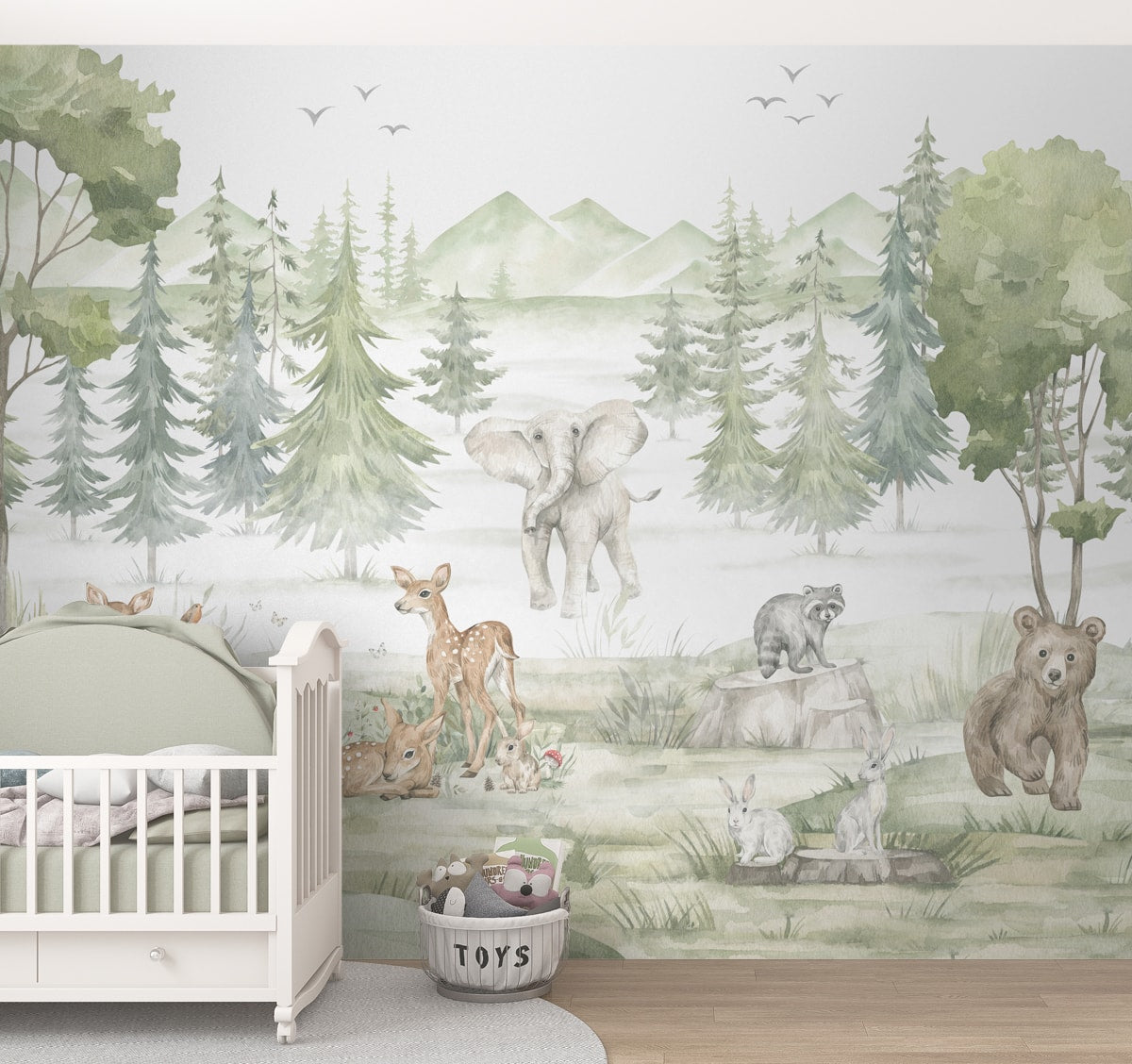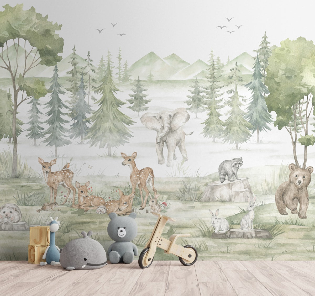 Vivez l'expérience de la nature avec notre papier peint personnalisé Jungle Safari pour chambre d'enfant. Débordant d'imprimés animaliers éclatants et d'une végétation luxuriante, il transforme les crèches, les salles de jeux et les écoles en espaces d'aventure parfaits pour les filles comme pour les garçons.