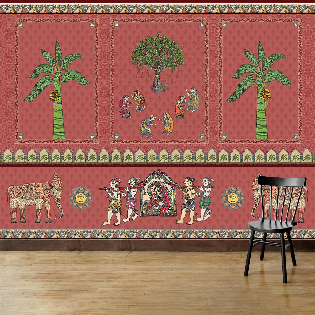 Découvrez la beauté divine de Krishna Leela dans notre collection de papiers peints Suneherii Ultra Luxury. Élevez votre espace avec des designs complexes qui racontent les histoires enchanteresses du Seigneur Krishna.