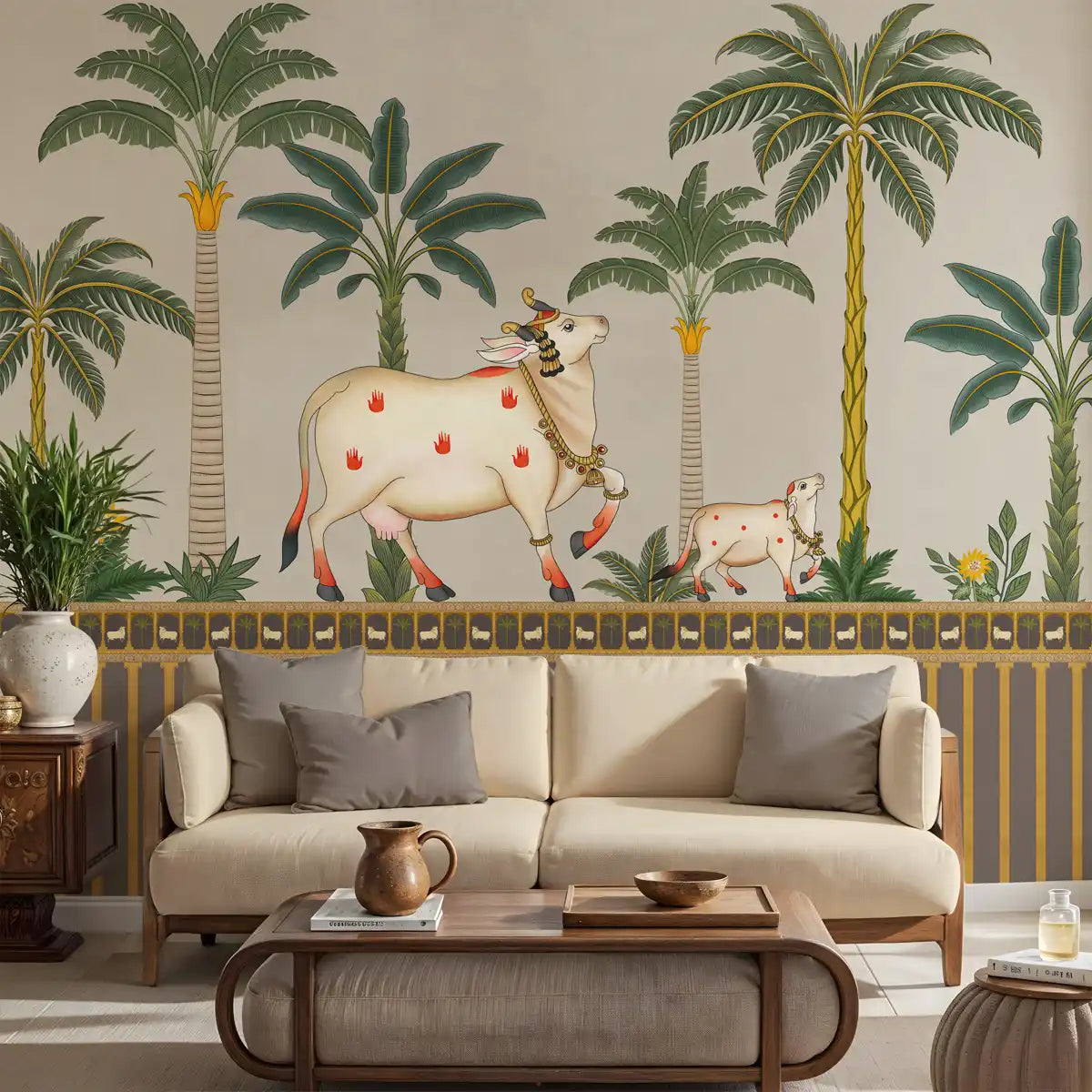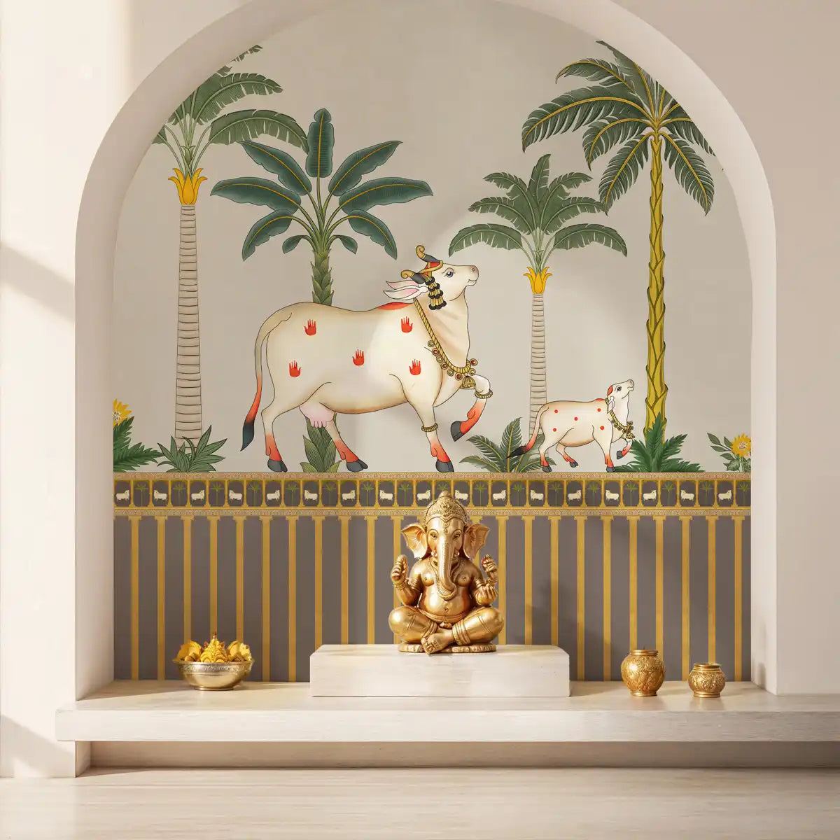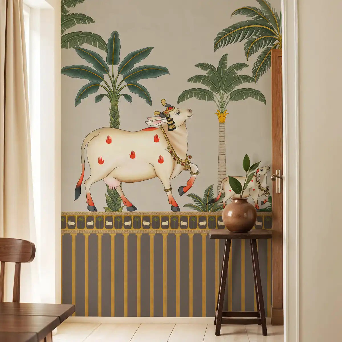 Le papier peint Ram Swayamvar de la collection Suneherii de Life n Colors résume la grandeur et la spiritualité du mariage de Lord Rama et Sita. Ce papier peint luxueux est un mélange de symbolisme divin et de design exquis, célébrant le riche héritage culturel du Ramayan.