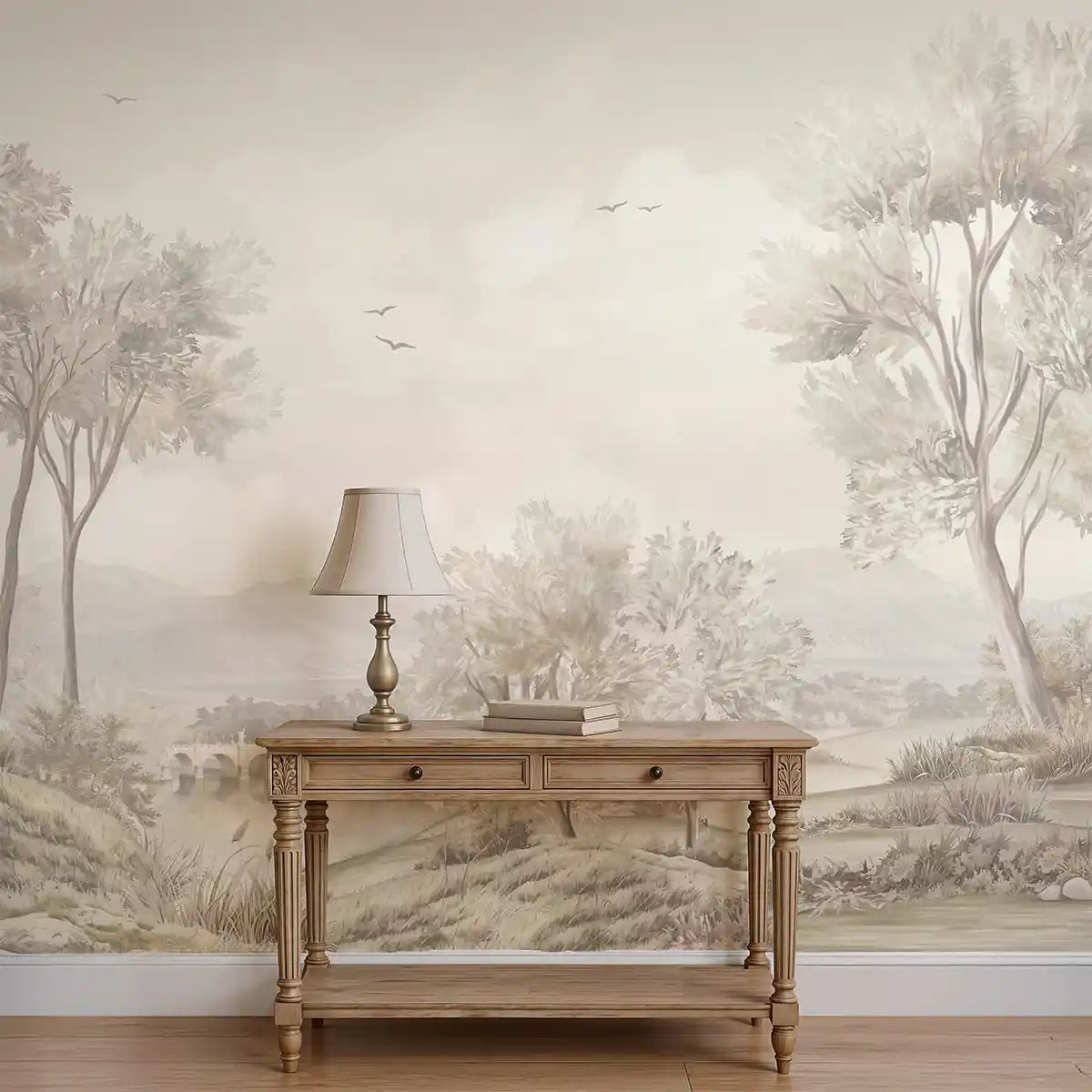 Papier peint Ran Shringar représentant la forêt de Ranthambore, beige crème