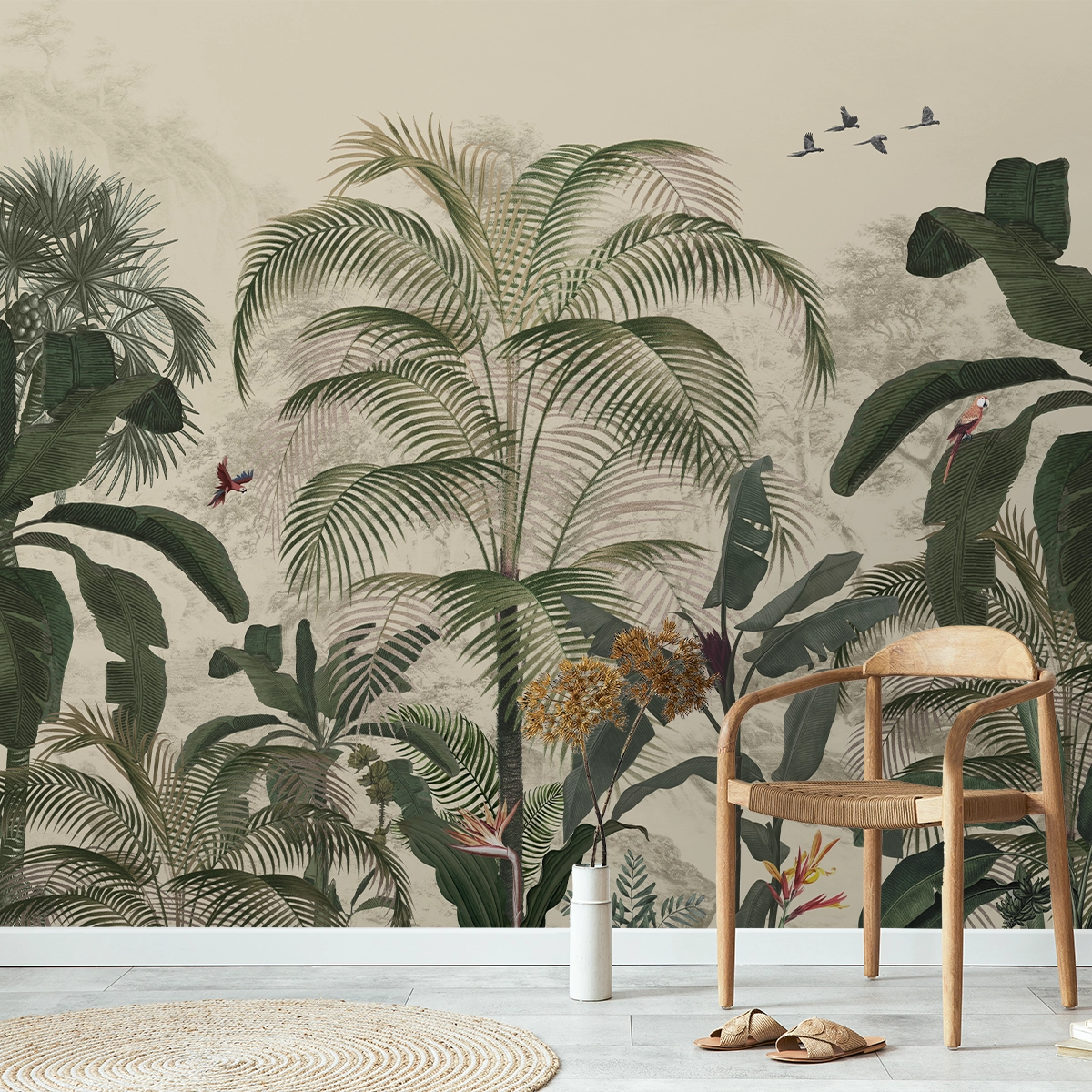Papier peint tropical « Vie côtière ». Plongez dans le charme envoûtant de la vie côtière avec notre papier peint tropical. Sentez la douce brise marine et le doux murmure des vagues tandis que vous transformez votre espace en une oasis tropicale. Plongez dans un monde de couleurs vibrantes, de végétation luxuriante et de faune exotique, apportant l'essence du paradis directement sur vos murs.