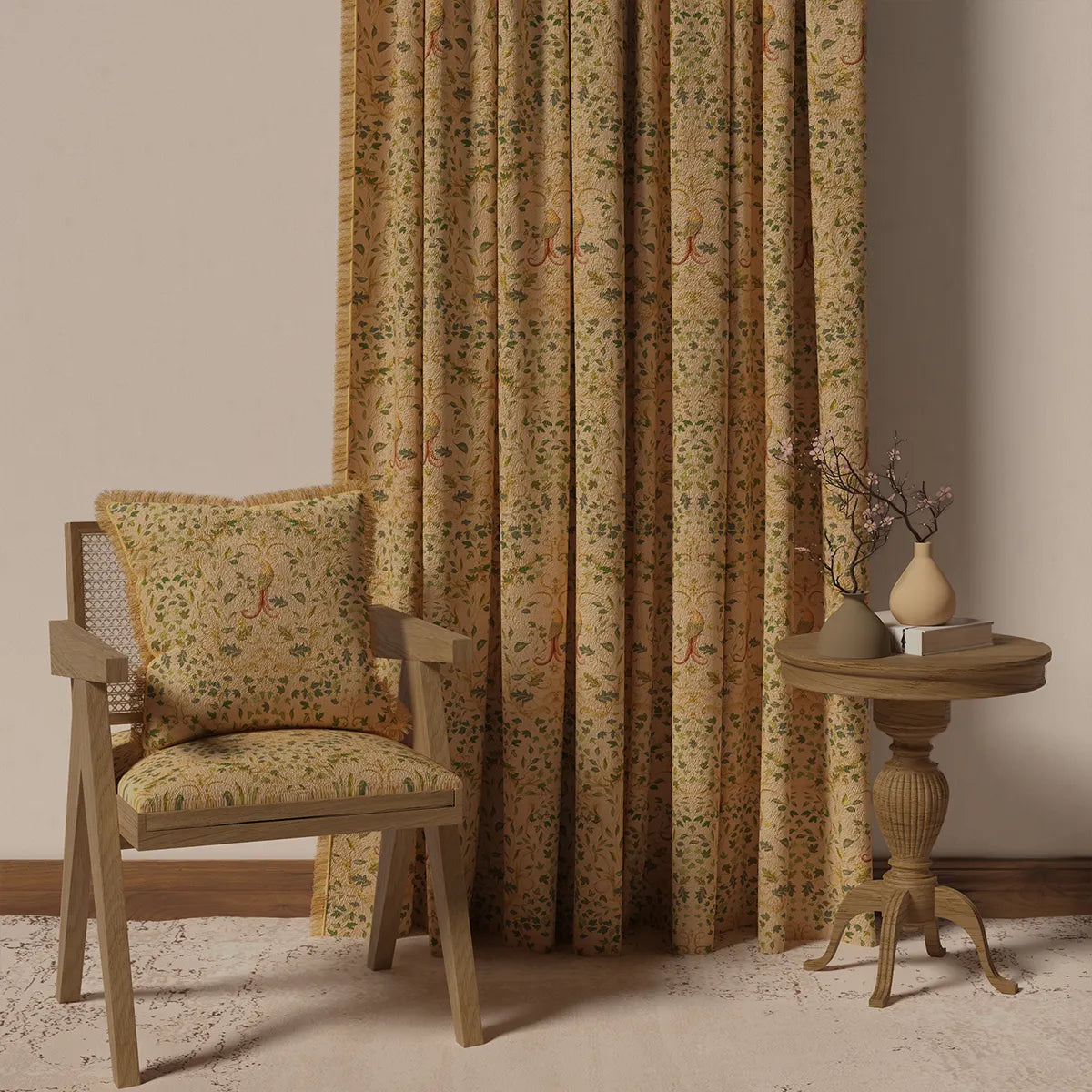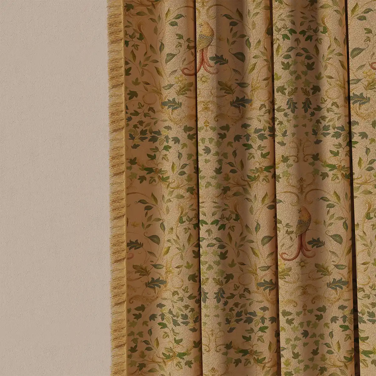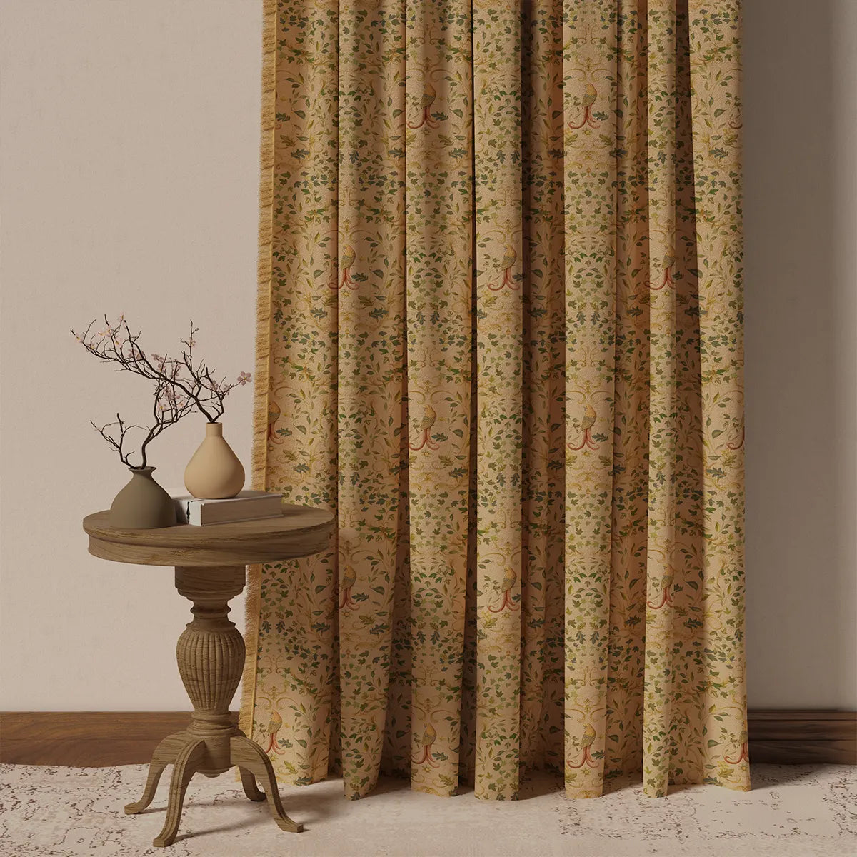 Bring the timeless charm of a lush garden into your home with our exquisite Bird Tapestry Fringes Curtain. This stunning curtain features a finely detailed tapestry-inspired design with verdant green leaves and subtle floral accents, beautifully framing a graceful bird motif. The warm, earthy tones are complemented by a soft, fringed edge that adds a touch of traditional elegance and tactile richness. Perfect for adding a sophisticated and classic accent, this curtain will beautifully adorn your windows, creating an inviting and refined atmosphere.