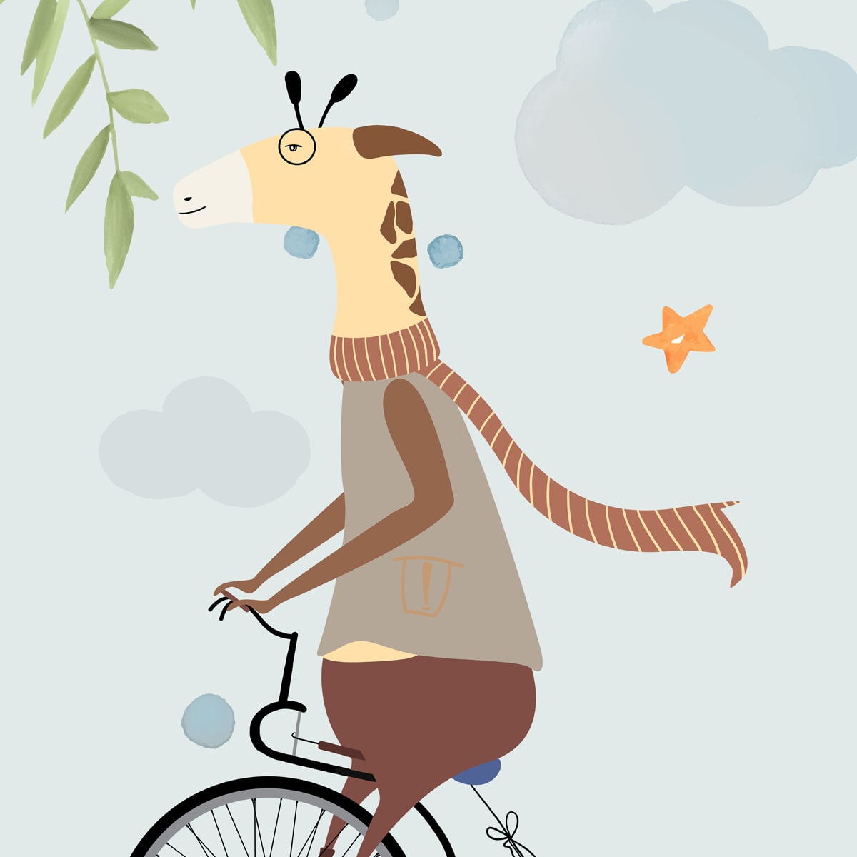Girafe faisant du vélo sur une corde, thème animal pour chambre d'enfant | Fait sur mesure | Impressions claires et vibrantes | Facile à entretenir | Vie n Couleurs | Fabriqué en Inde