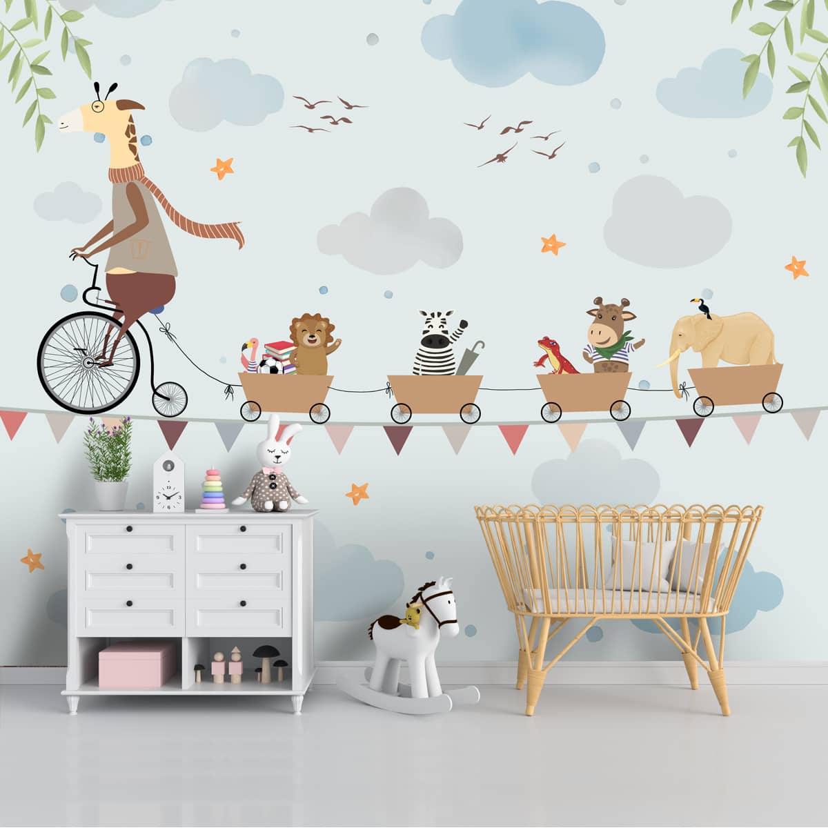 Girafe faisant du vélo sur une corde, thème animal pour chambre d'enfant, personnalisé