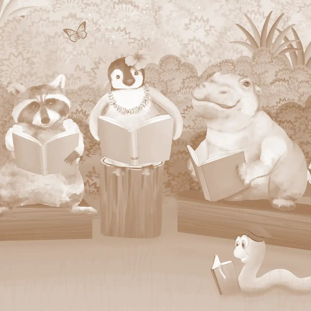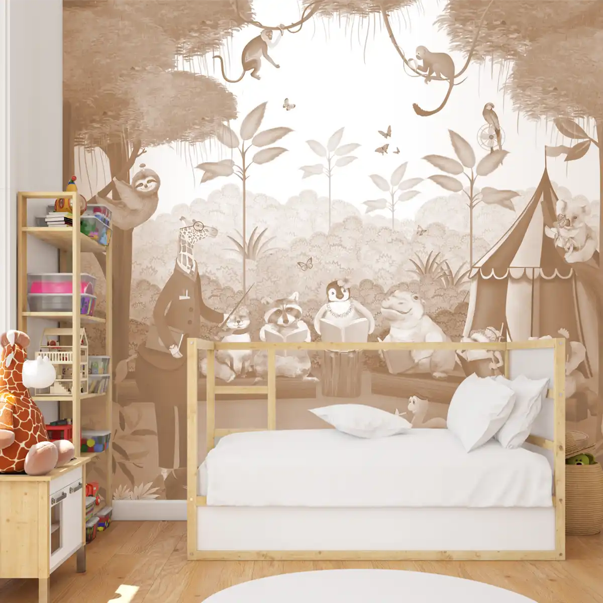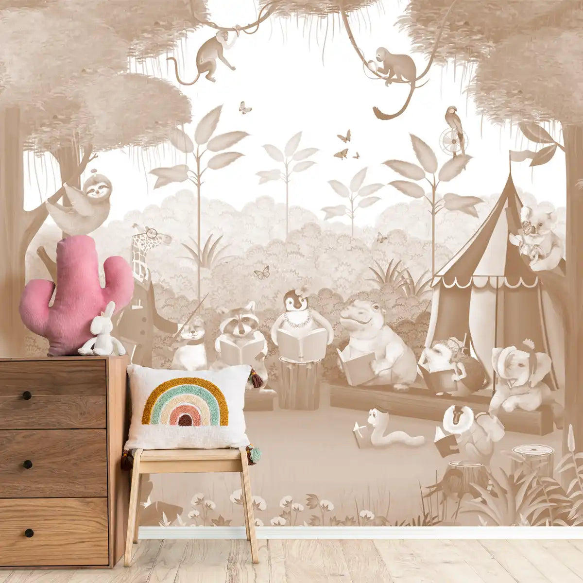 Salle de classe Jungle avec animaux Papier peint | Fait sur mesure | Impressions claires et vibrantes | Facile à entretenir | Vie n Couleurs | Fabriqué en Inde
