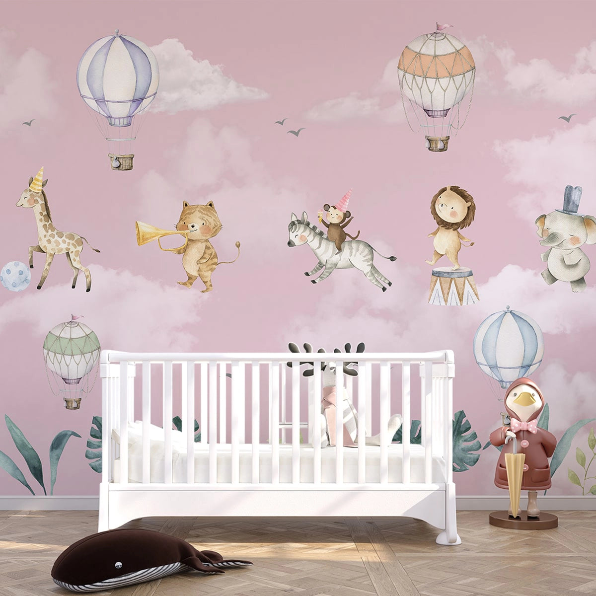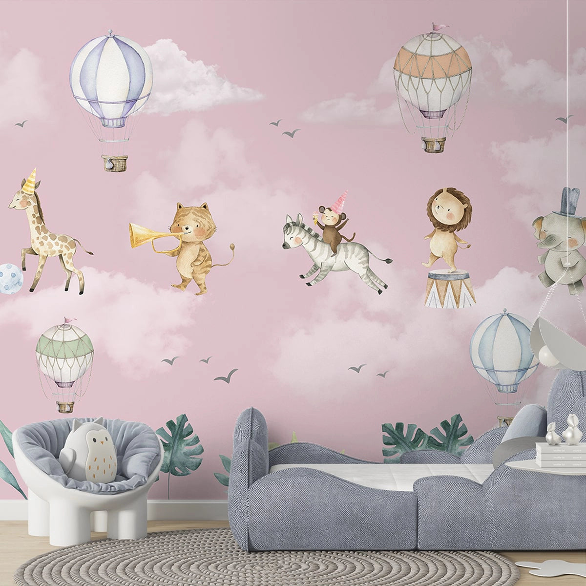 Marching Musical Band of Jungle Animals, papier peint pour chambre d'enfant, jaune