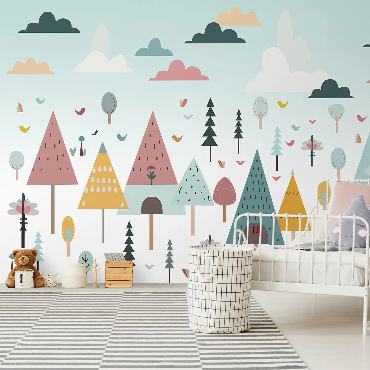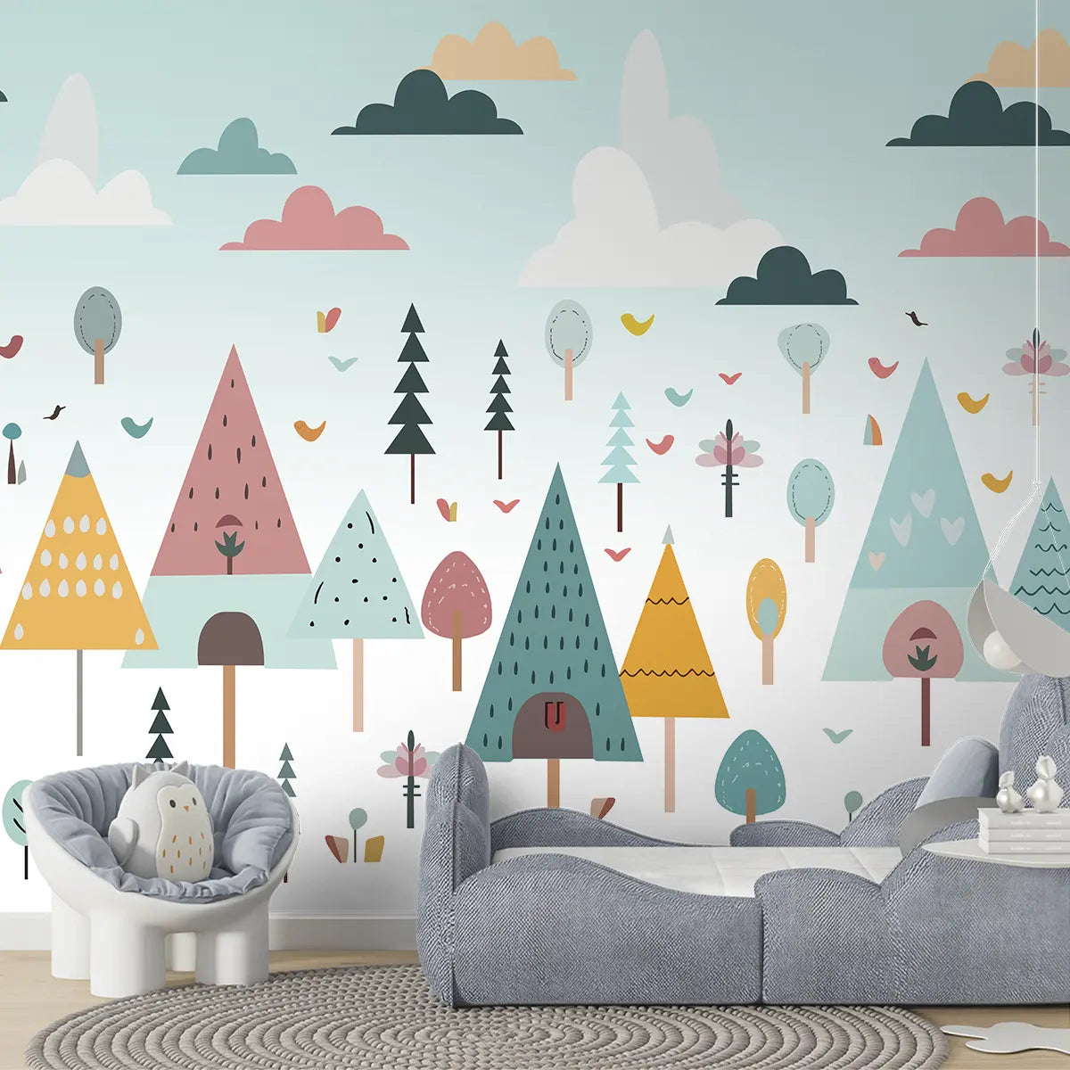 Papier peint amusant pour chambre de jeunes enfants dans la jungle pastel | Fait sur mesure | Impressions claires et vibrantes | Respectueux de l'environnement et non toxique | Facile à entretenir | Vie n Couleurs | Fabriqué en Inde