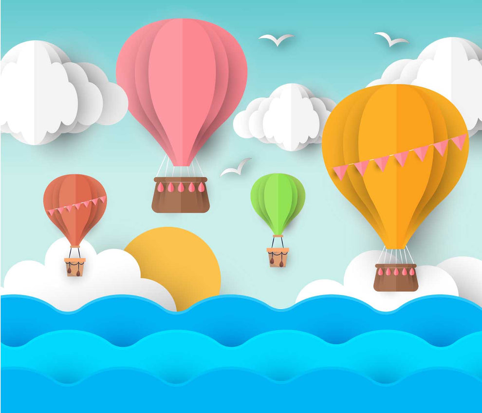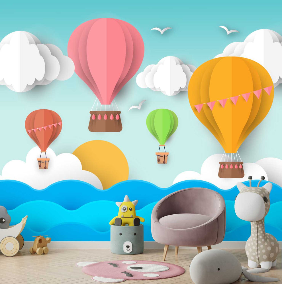 Papier peint 3D pour chambre d'enfant, thème montgolfière pour chambre d'enfant | Fait sur mesure | Impressions claires et vibrantes | Facile à entretenir | Vie n Couleurs | Fabriqué en Inde