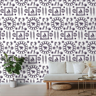 Papier peint indien noir et blanc pour pièces | Imprimés clairs et éclatants | Entretien facile | Couleurs et vie | Fabriqué en Inde