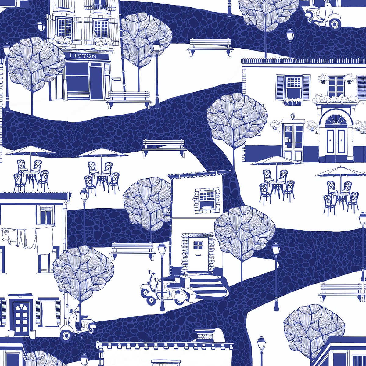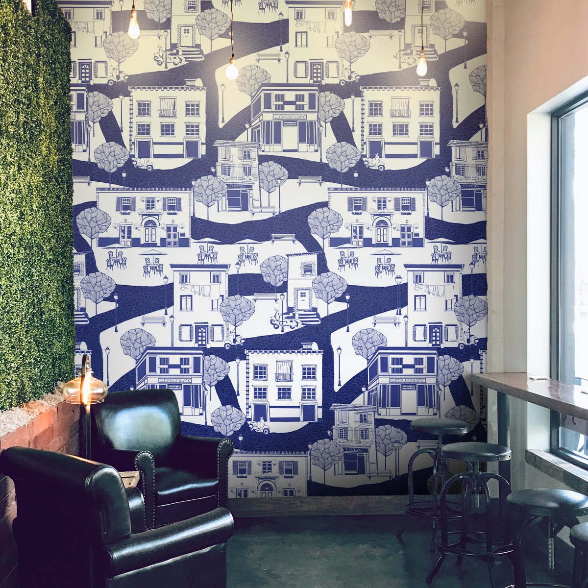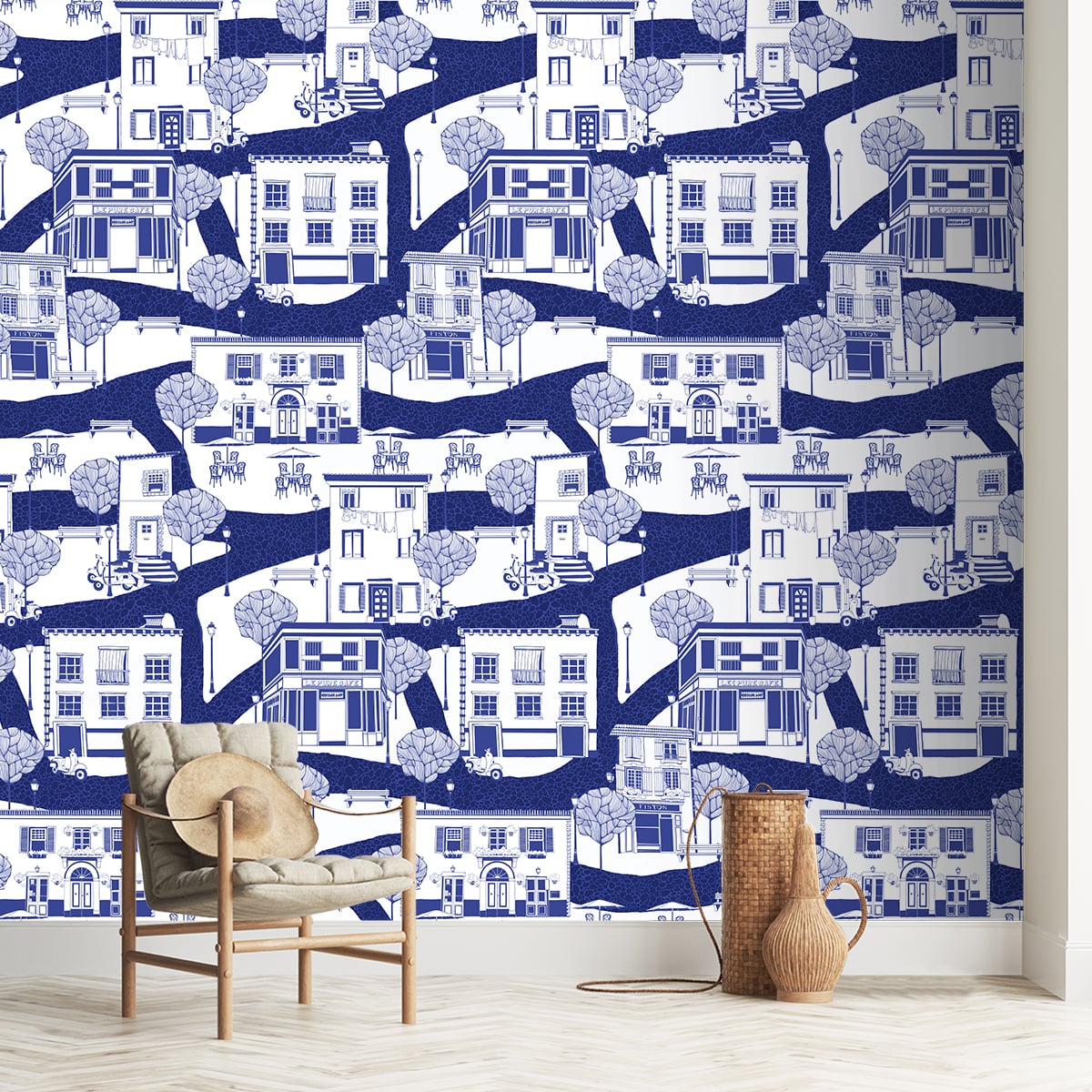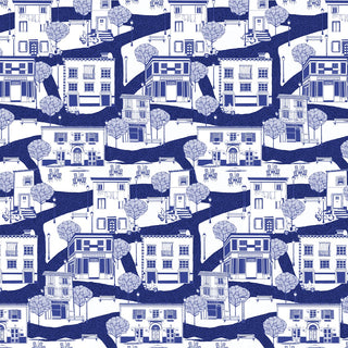 Papier peint bleu indigo pour mur d'une ville française
