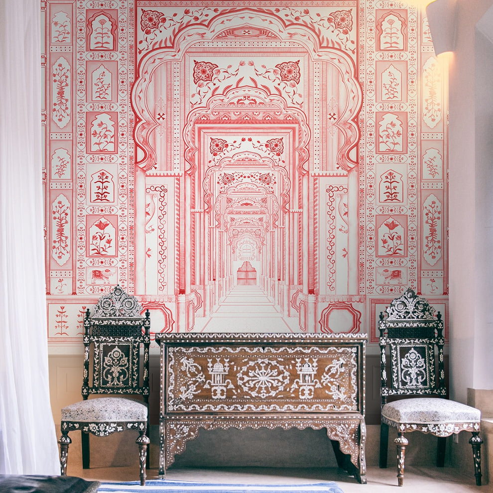 Dilli Darbar, papier peint de la collection Suneherii, rouge cramoisi, personnalisé