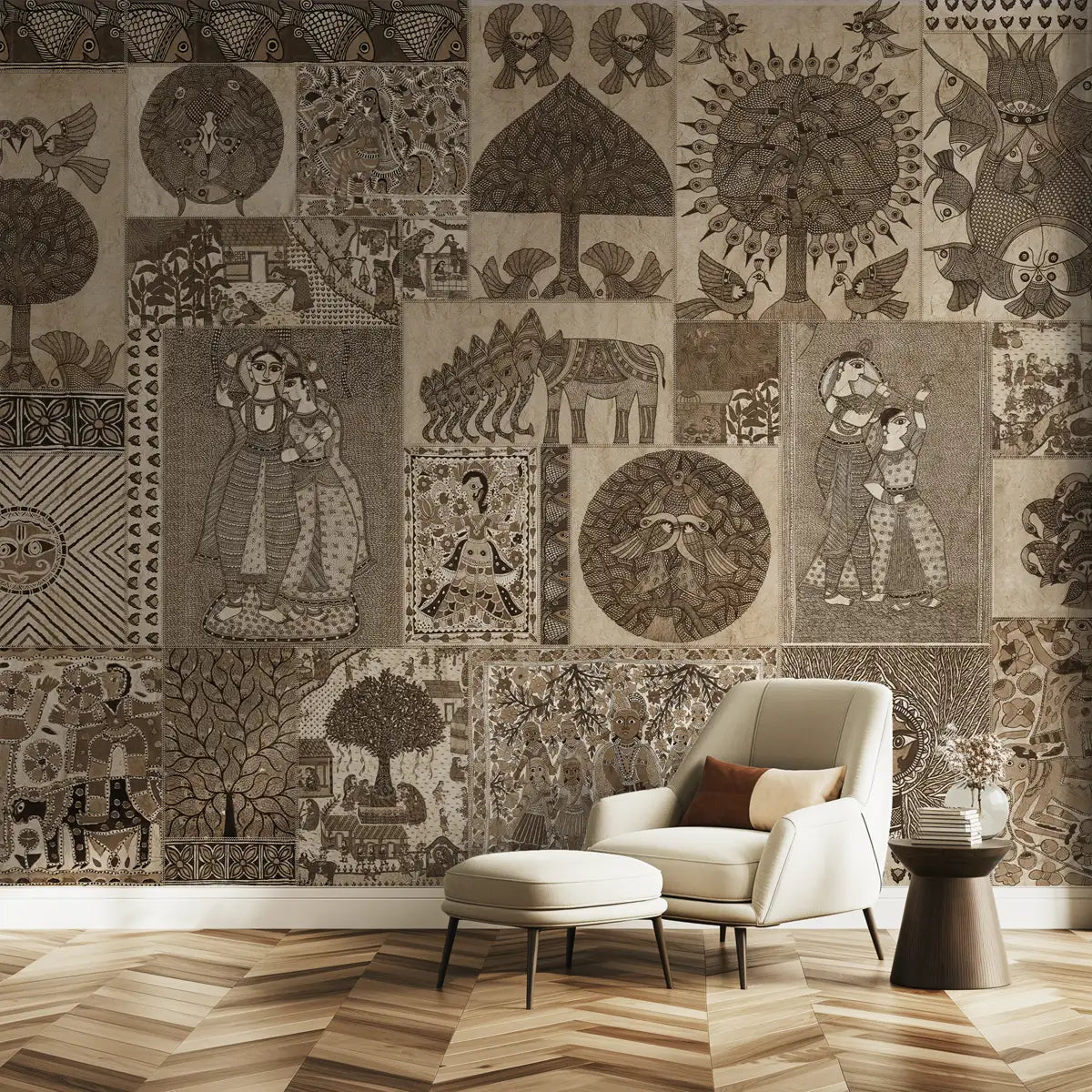 Kahani, papier peint sur le thème de l'art indien, personnalisé