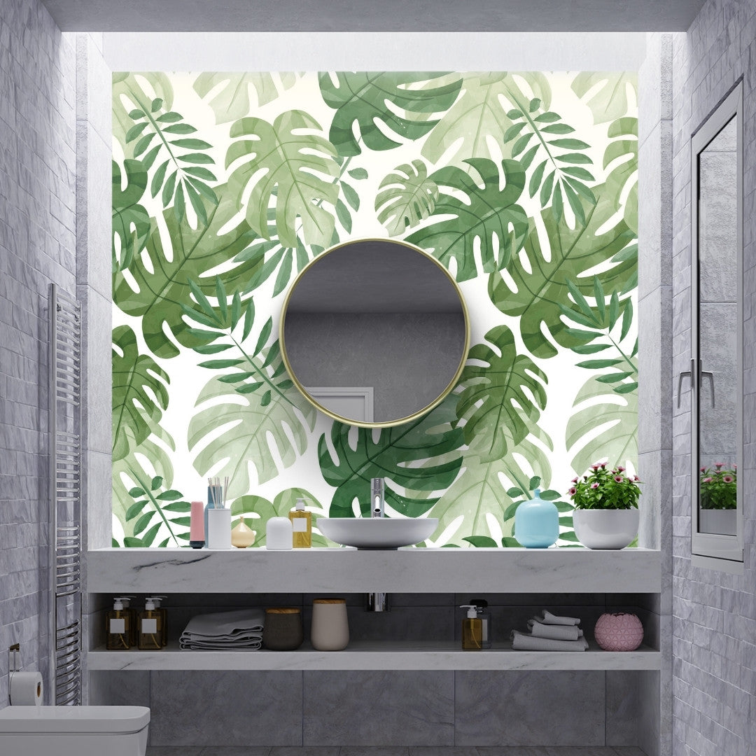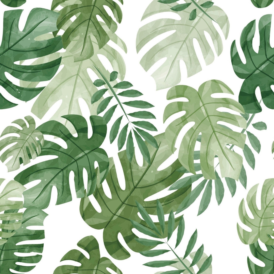 Papier peint à feuilles tropicales peint à la main pour les chambres | Fait sur mesure | Impressions claires et vibrantes | Facile à entretenir | Couleurs de vie | Fabriqué en Inde