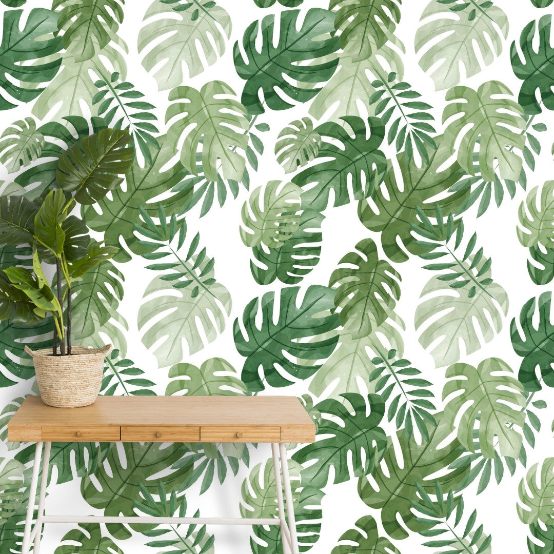 Papier peint à feuilles tropicales peint à la main pour les chambres
