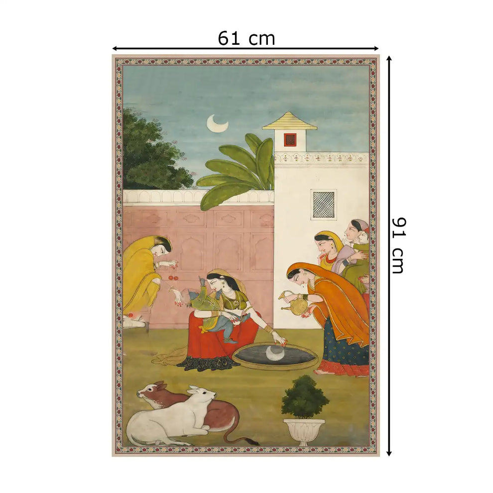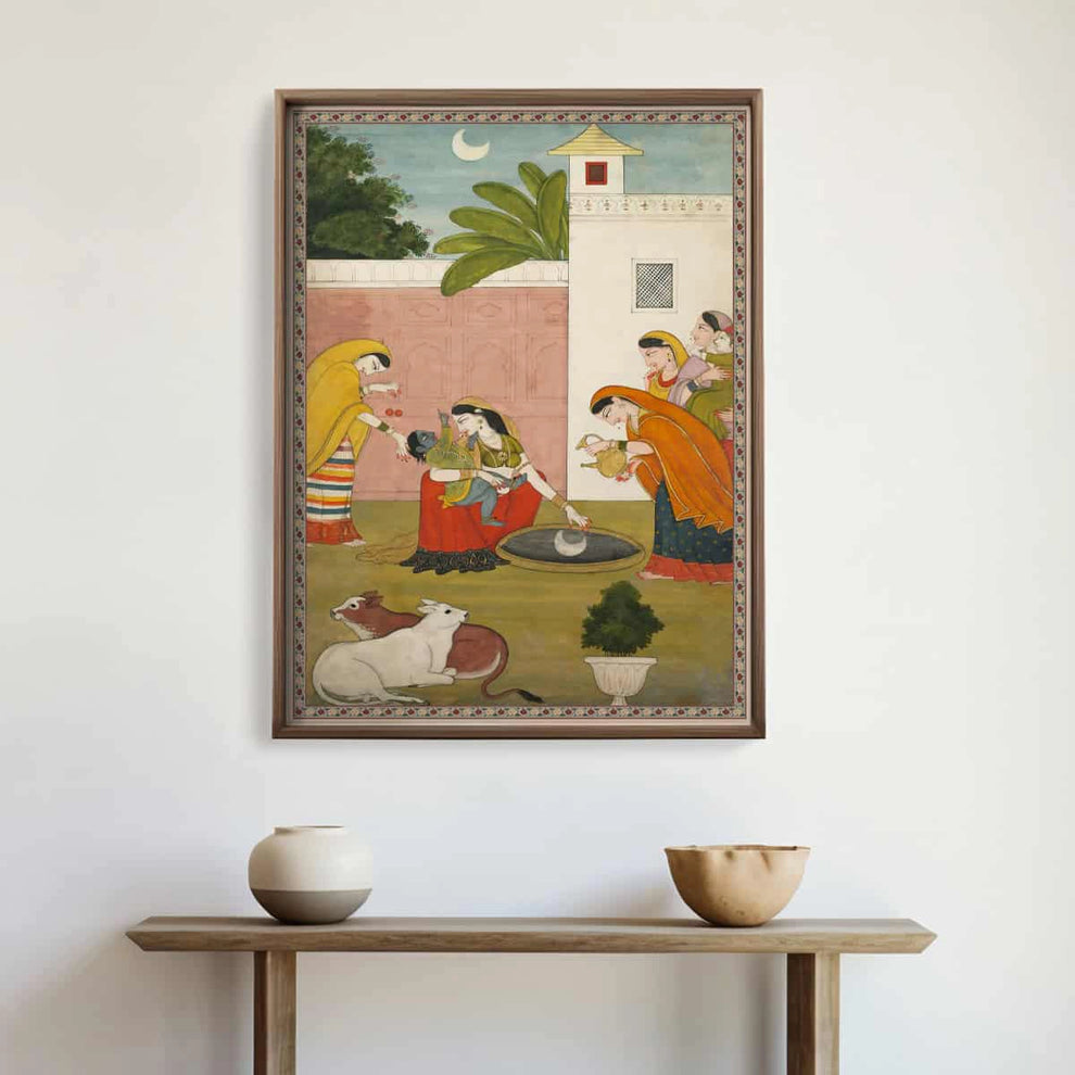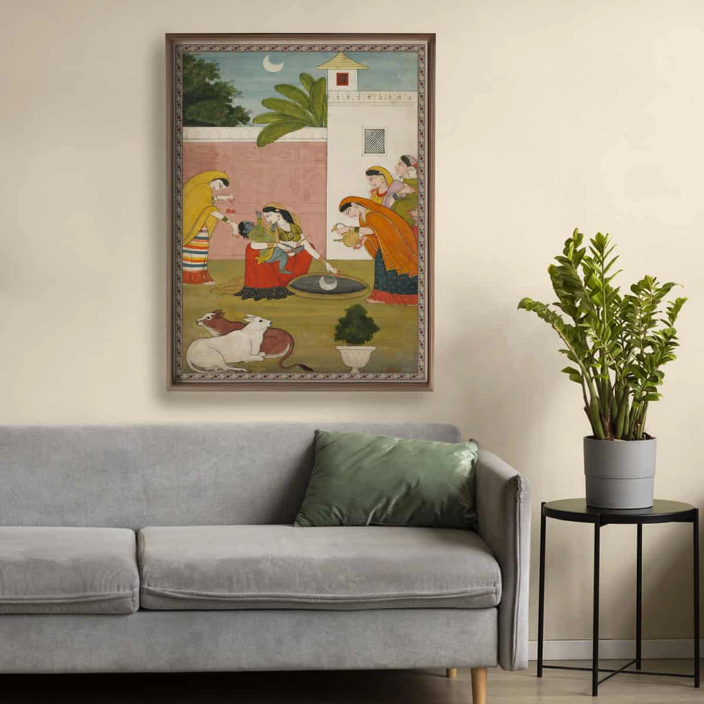 Impression numérique sans cadre, peinture indienne vintage Kanha, grande décoration murale pour salon. Livré sans cadre. Imprimé sur un matériau durable avec des encres à base d'eau pour des impressions éclatantes et nettes, durables et résistantes.