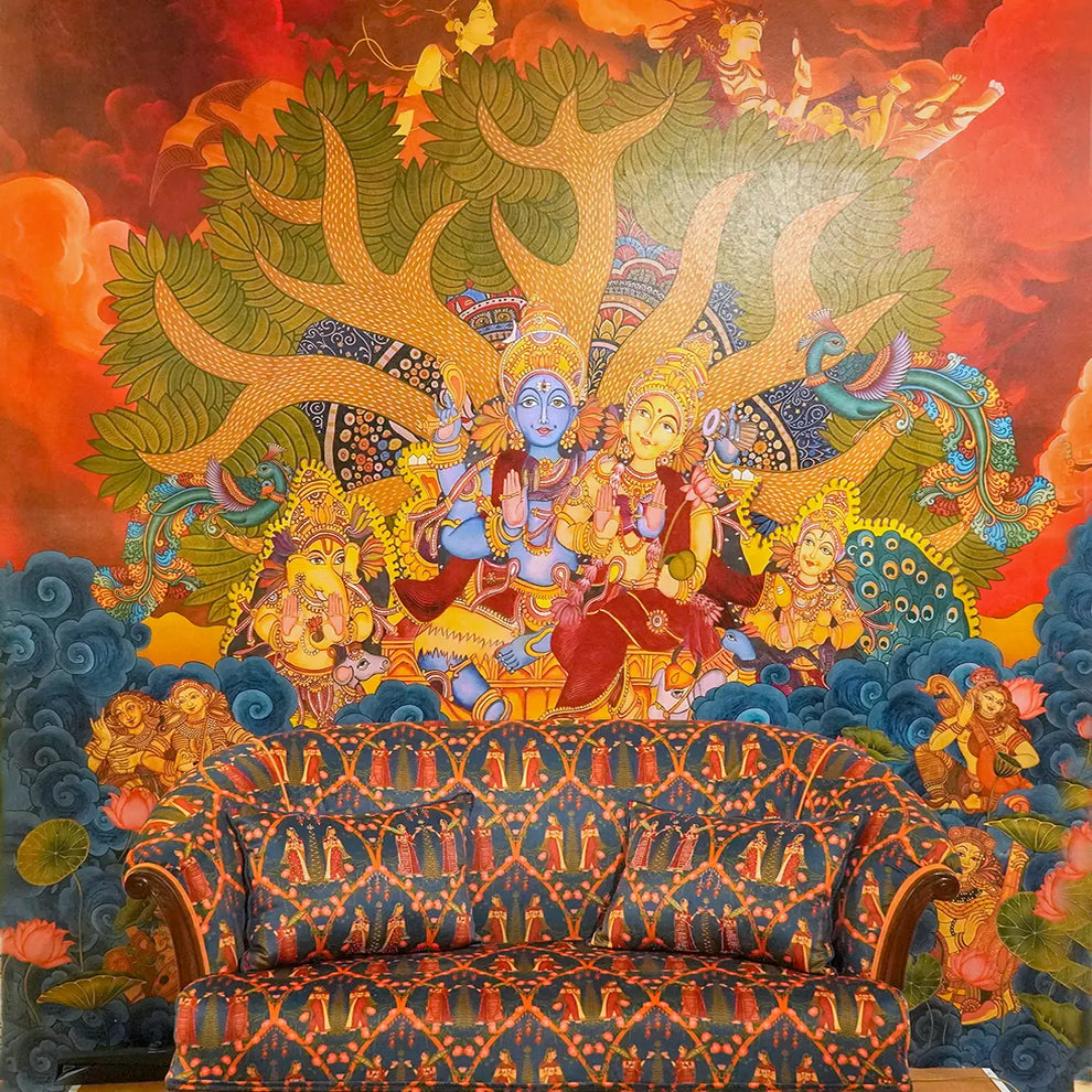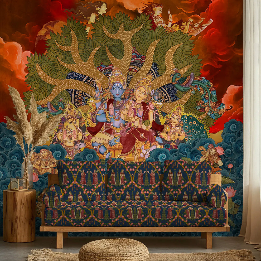 Découvrez la beauté divine de Krishna Leela dans notre collection de papiers peints Suneherii Ultra Luxury. Élevez votre espace avec des designs complexes qui racontent les histoires enchanteresses du Seigneur Krishna.