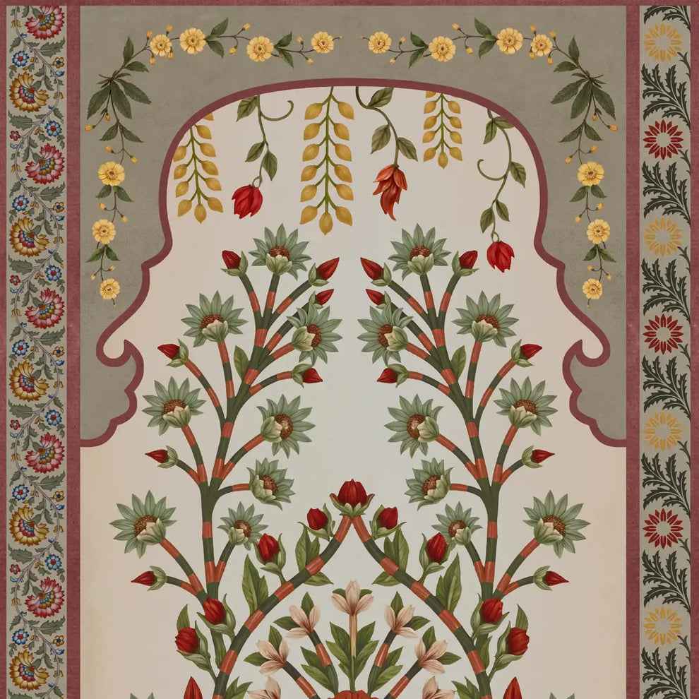 • Le papier peint Ram Swayamvar de la collection Suneherii de Life n Colors résume la grandeur et la spiritualité du mariage de Lord Rama et Sita. Ce papier peint luxueux est un mélange de symbolisme divin et de design exquis, célébrant le riche héritage culturel du Ramayan.