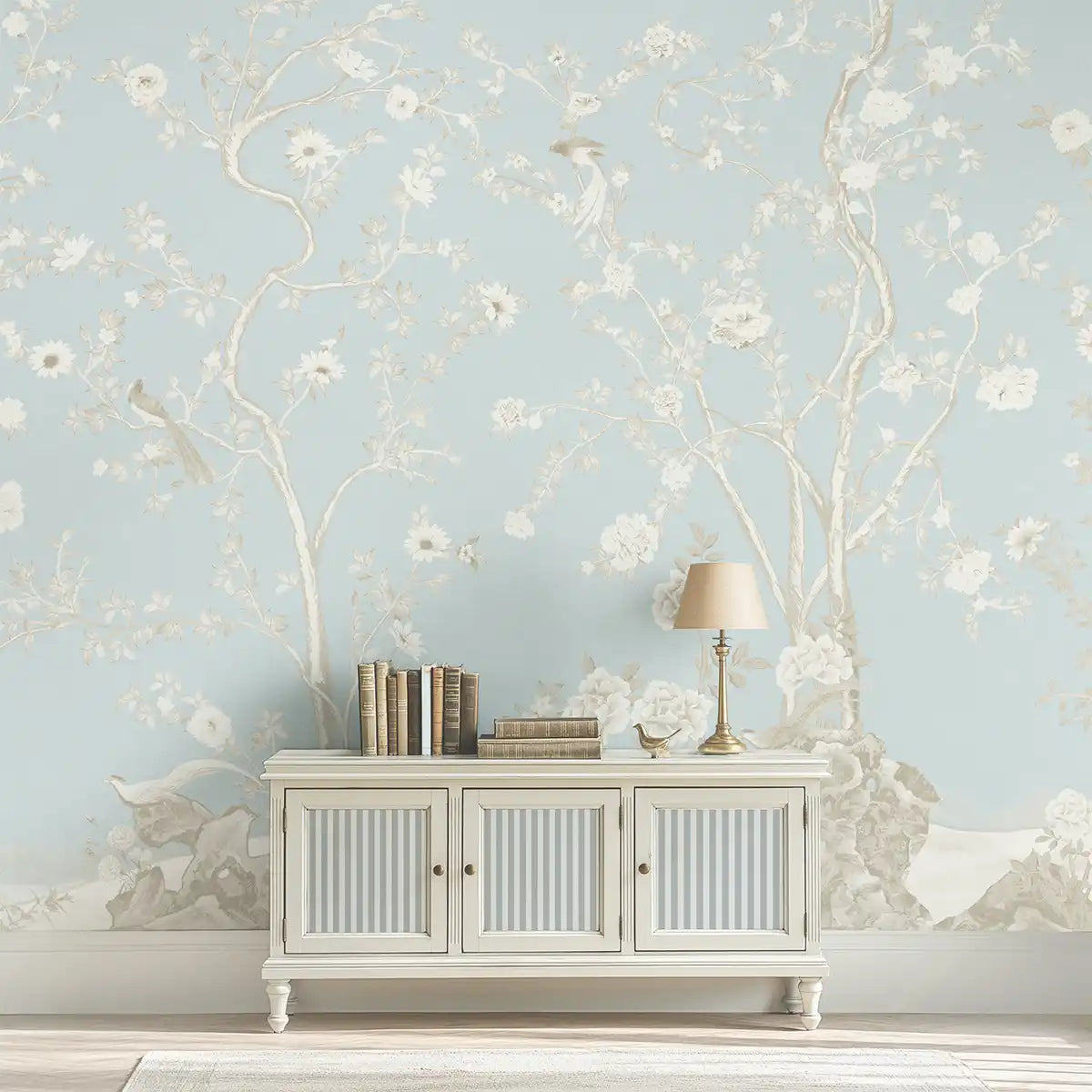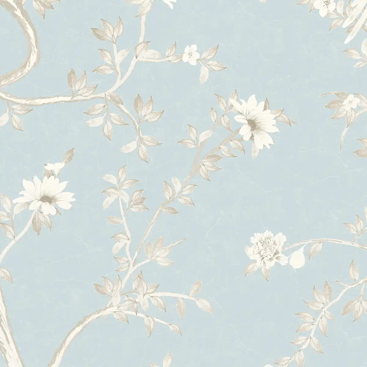 Papier peint chinoiserie vintage en fleurs de menthe pour murs