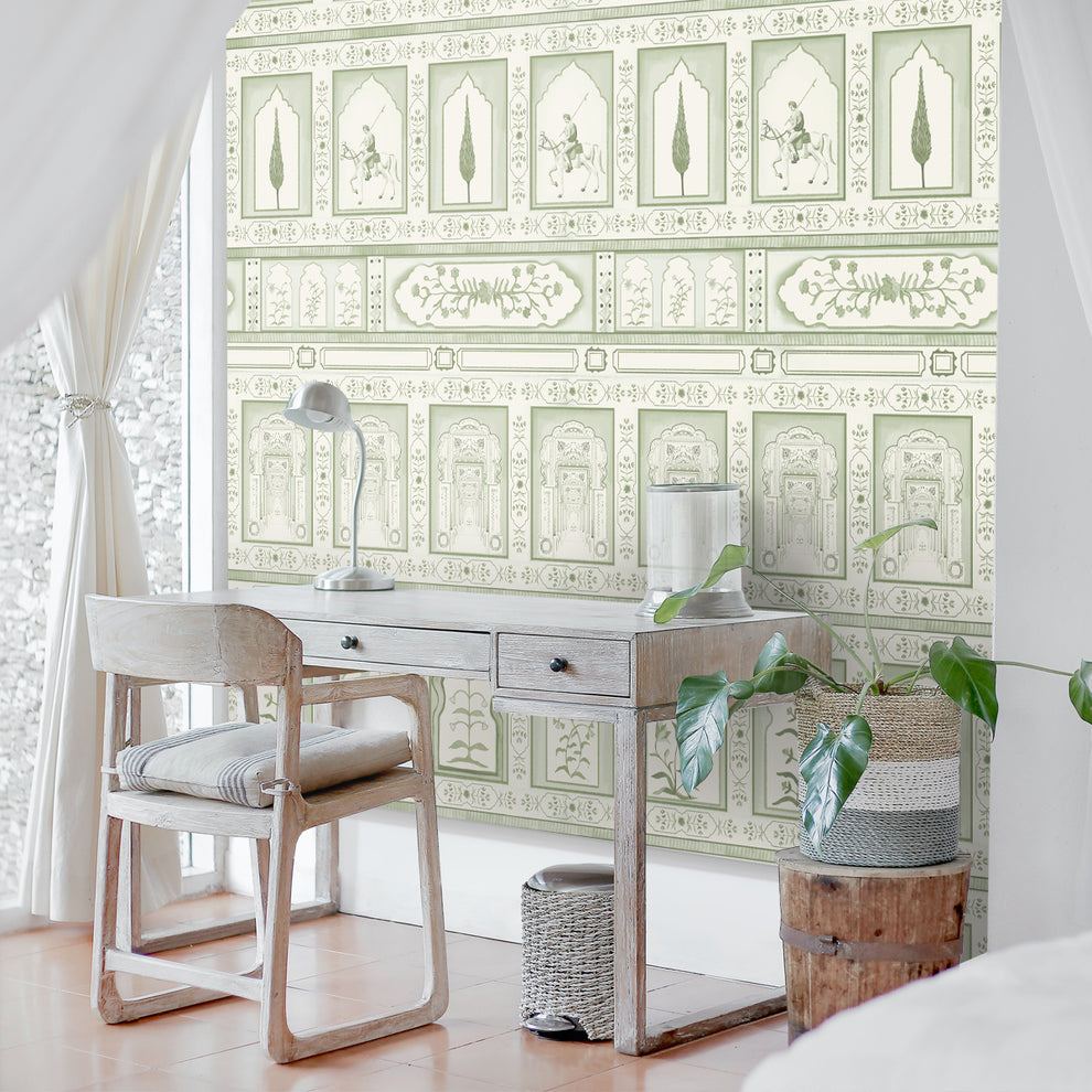 Papier peint pour chambre indienne Rajmahal, vert clair