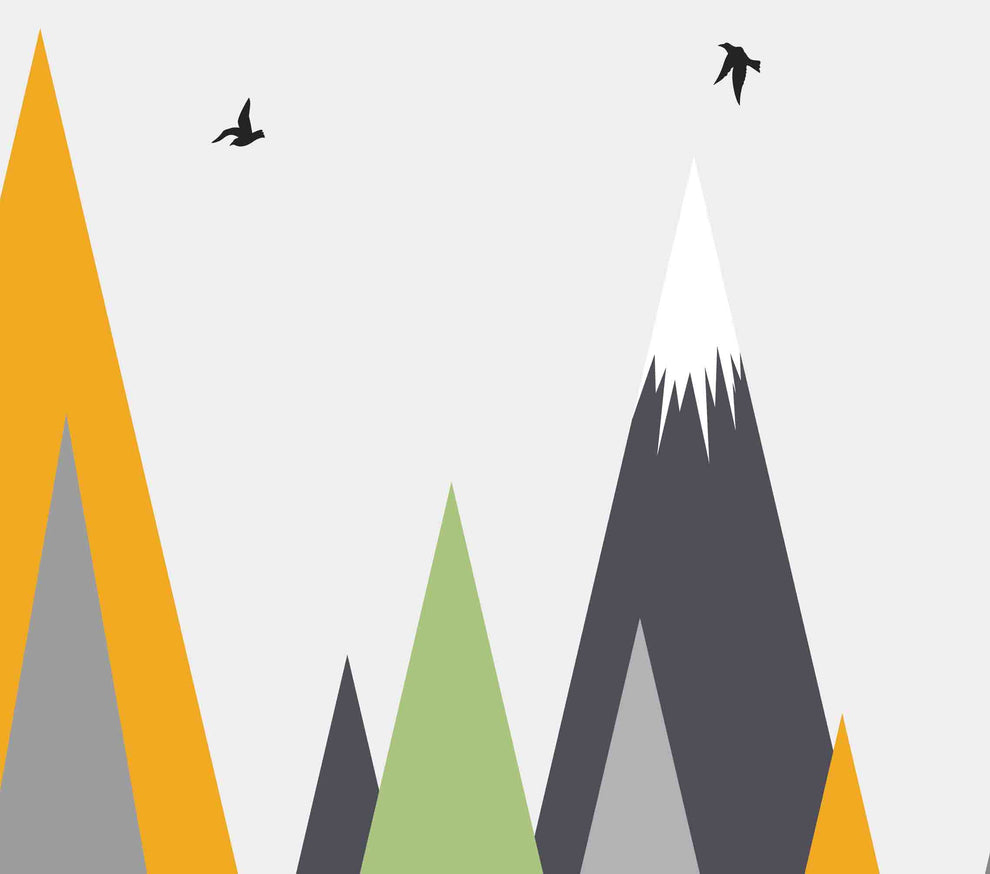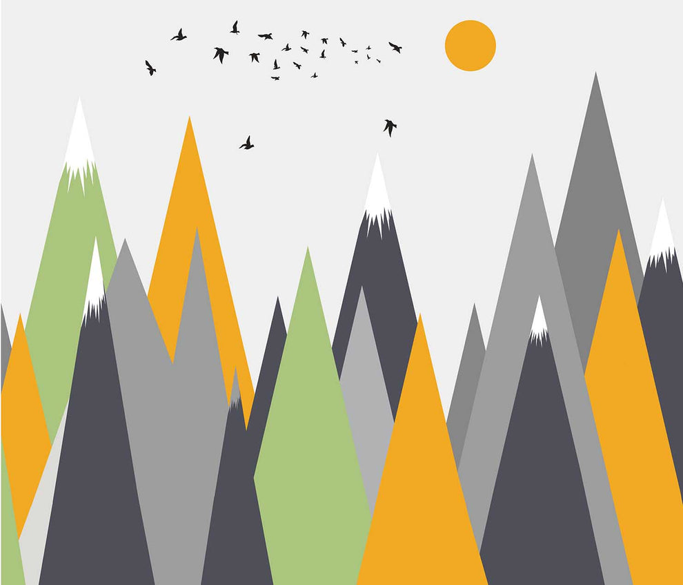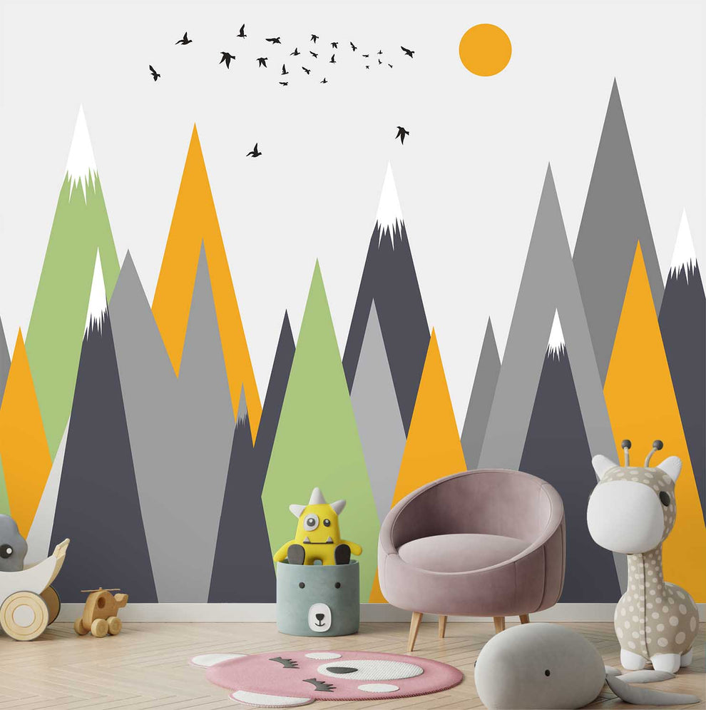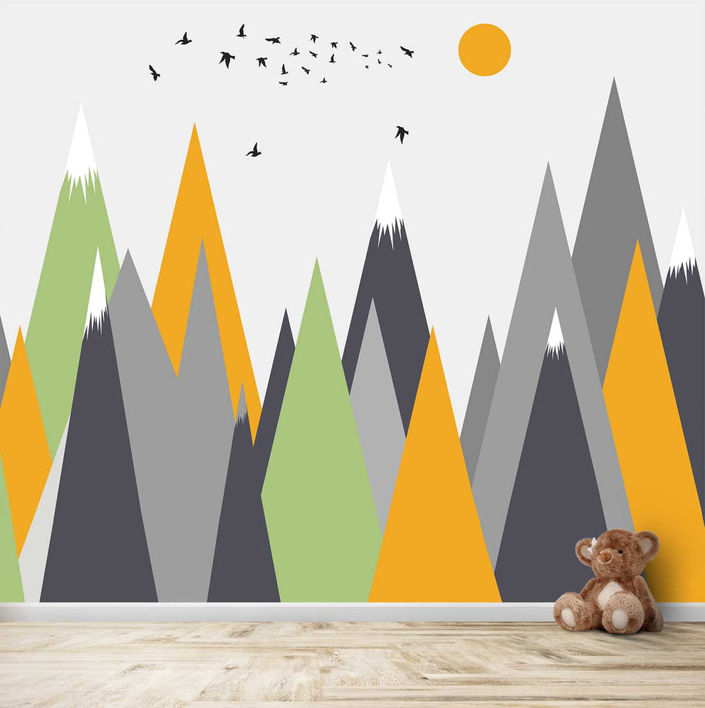 Thème Montagnes jaune uni, gris et vert pour chambre d'enfant