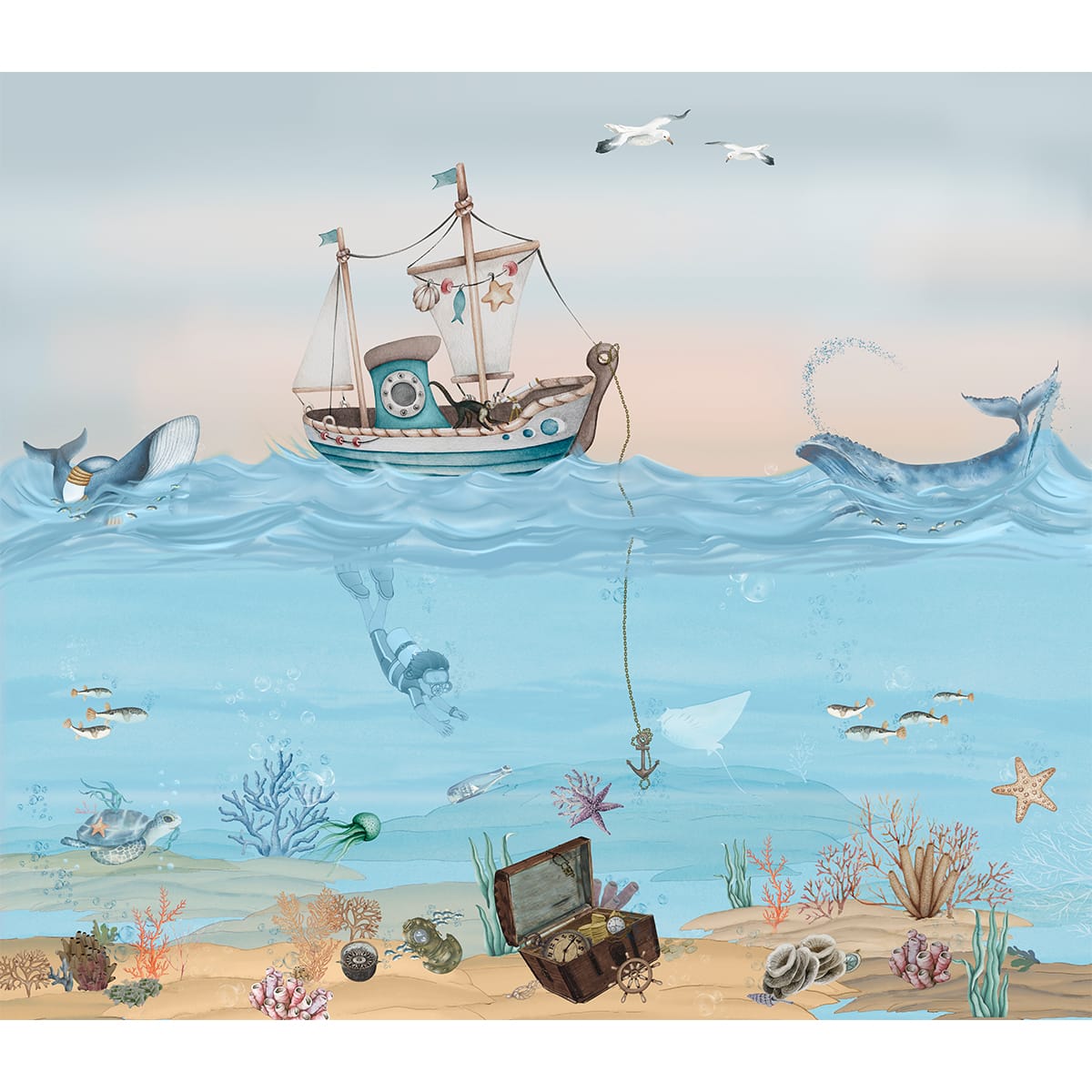 Le voyage en mer, papier peint pour chambre d'enfant | Fait sur mesure | Impressions claires et vibrantes | Facile à entretenir | Vie n Couleurs | Fabriqué en Inde