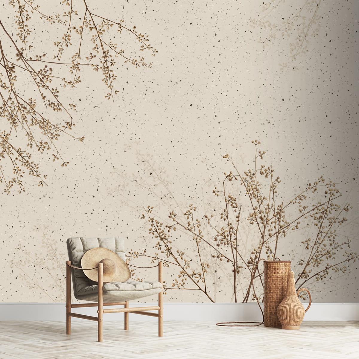 Papier peint au charme botanique vintage, personnalisé pour vos murs. Ce papier peint de haute qualité est imprimé sur du papier premium et présente une finition mate. | Life n Colors | Fabriqué en Inde