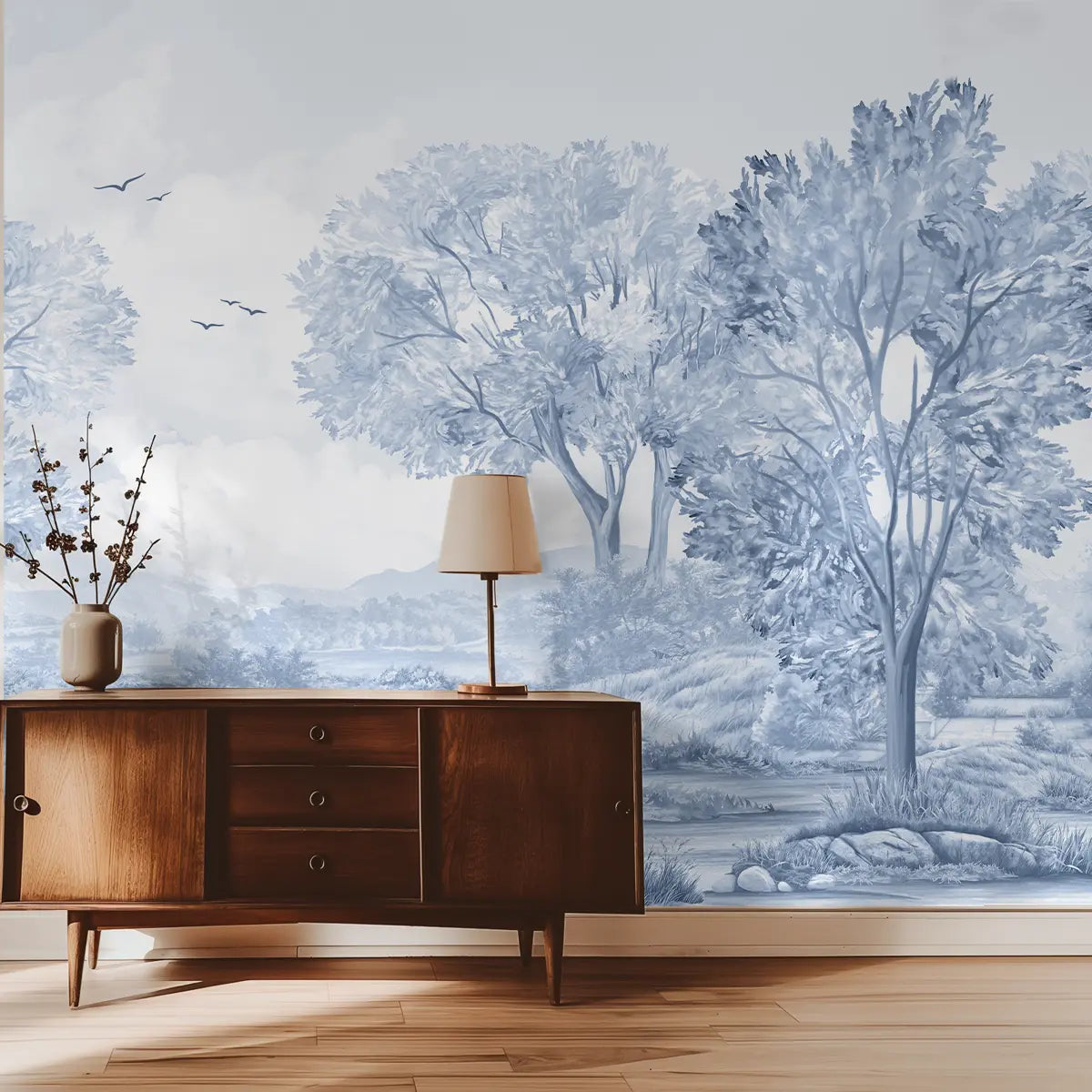 Papier peint bleu de style Pichwai pour les murs du hall et du temple