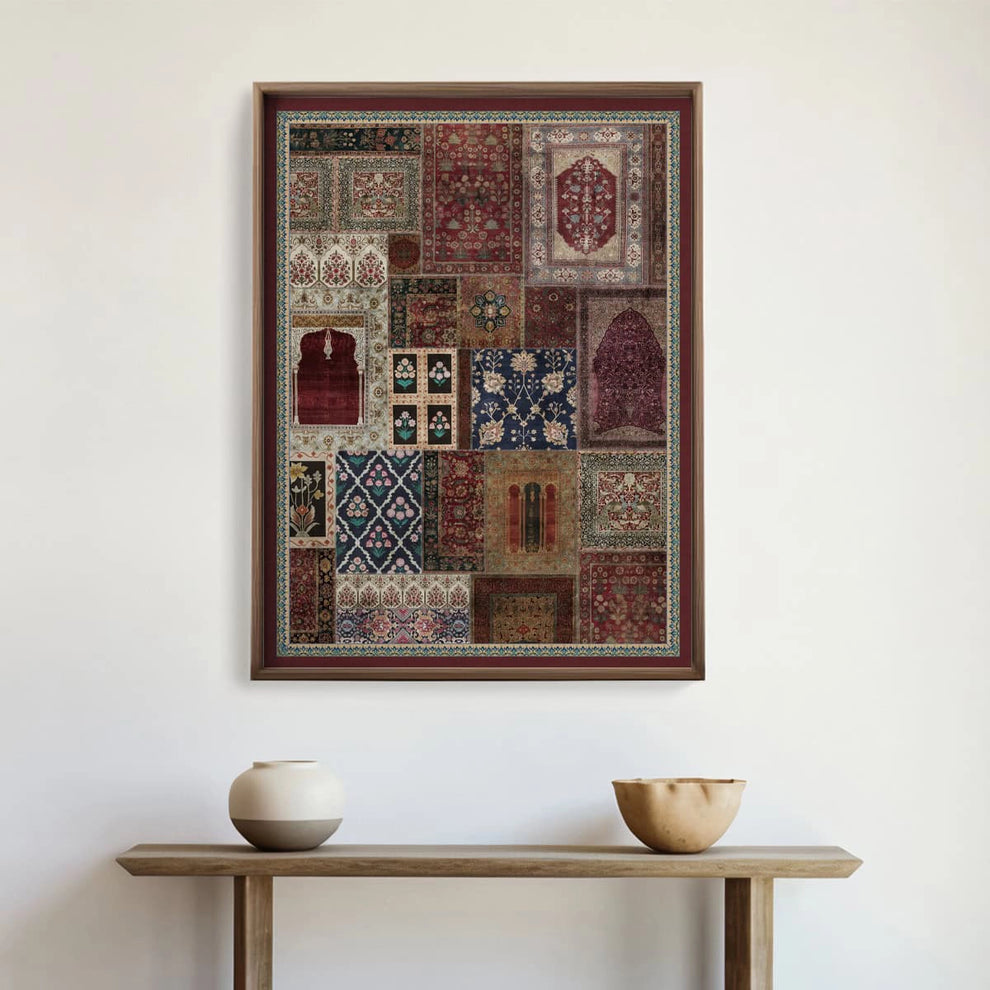 Aalishan Exquisite Indian Carpet Vintage Indian Painting Frameless Wall Art Digital Print Poste, Large Wall Art for Living Room Decor. This comes without any frame. This is printed on sustainable material using water-based inks which provide vibrant and clear prints which are durable and long-lasting.