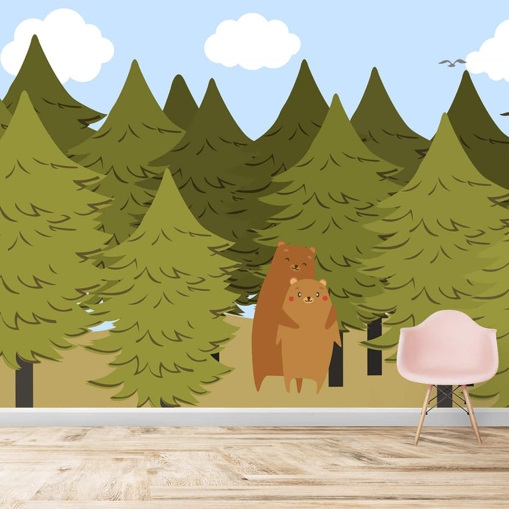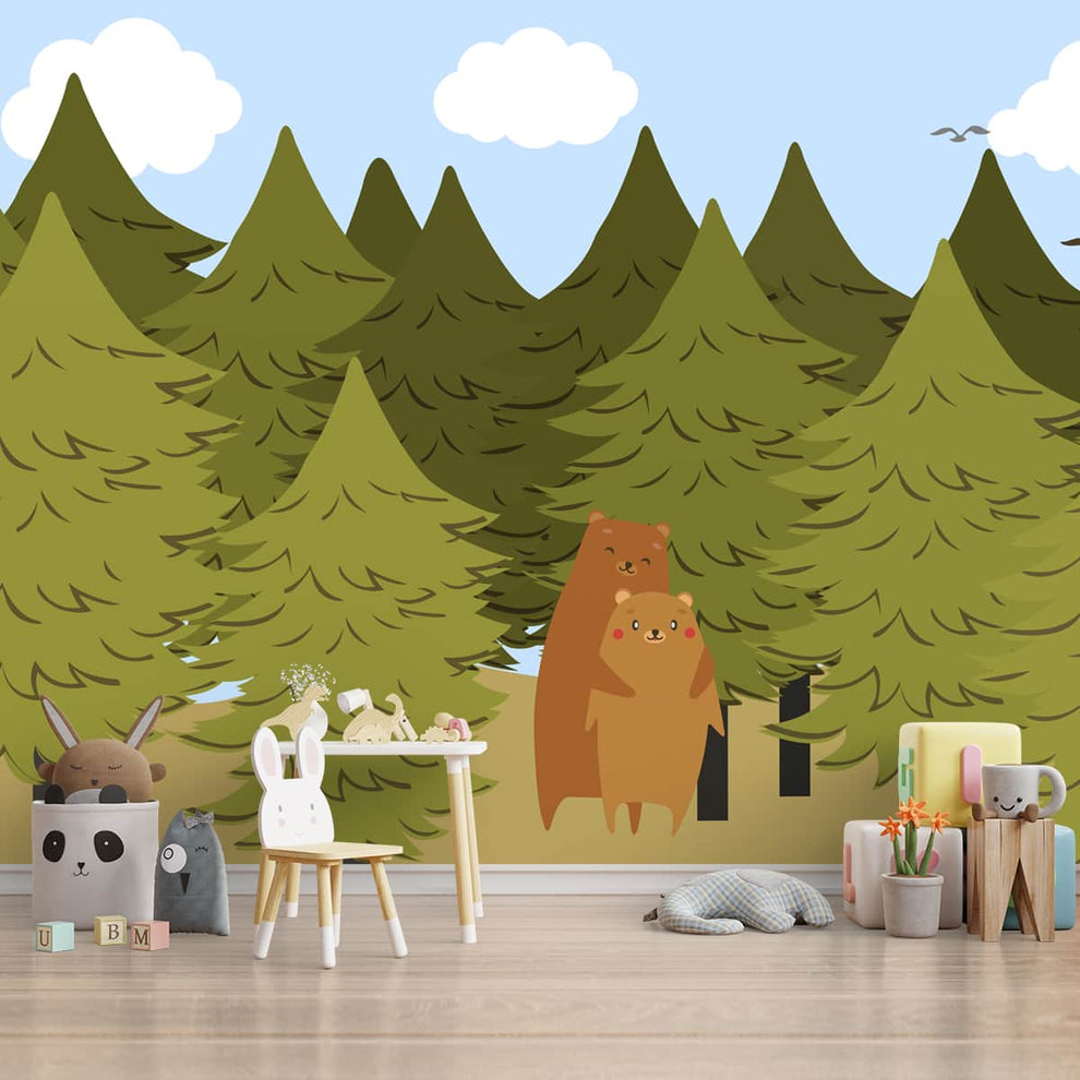 Bear in Jungle Kids Room Wallpaper | Custom made | Clear & vibrant prints | Easy to maintain | Life n Colors | Made in India