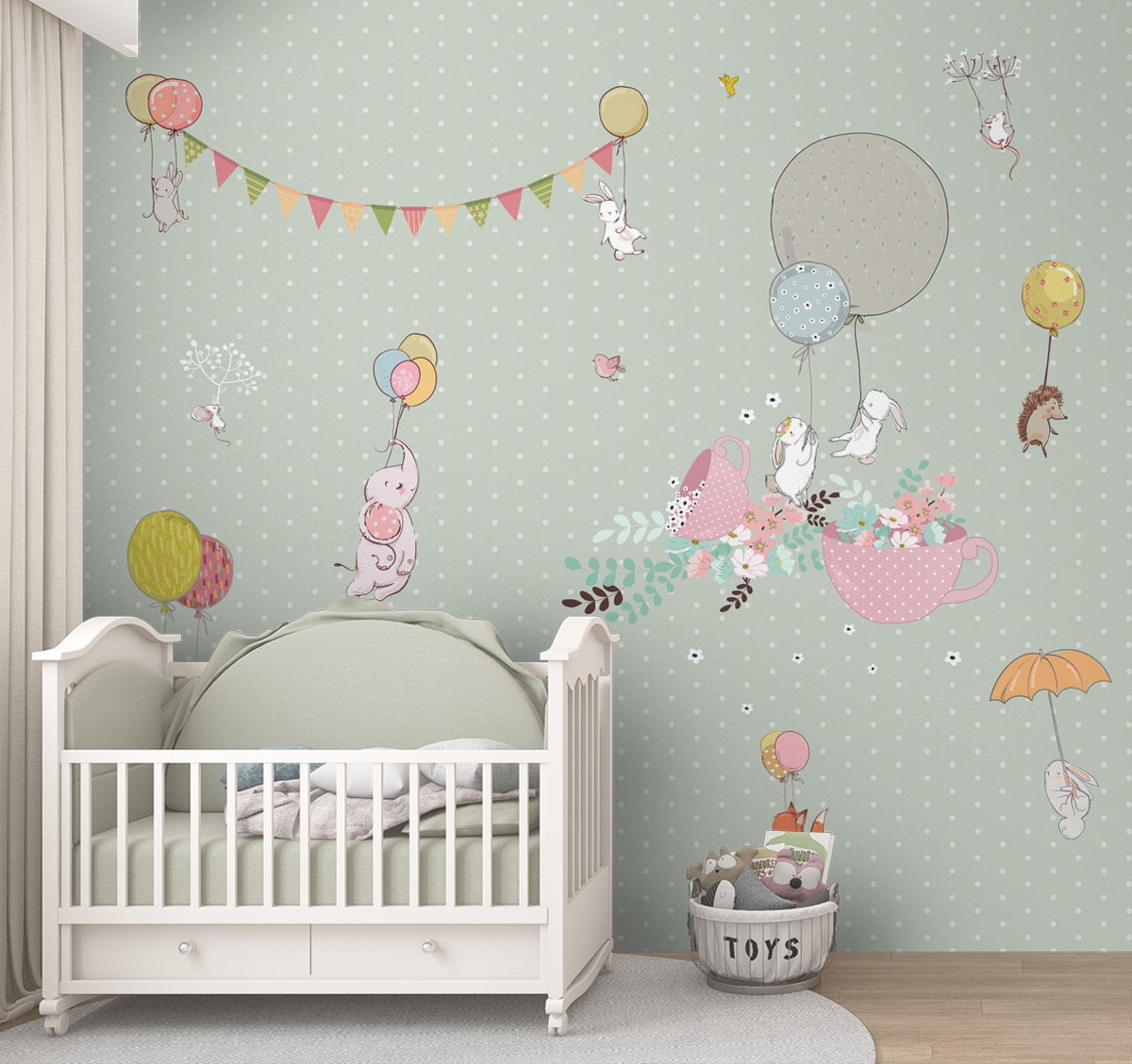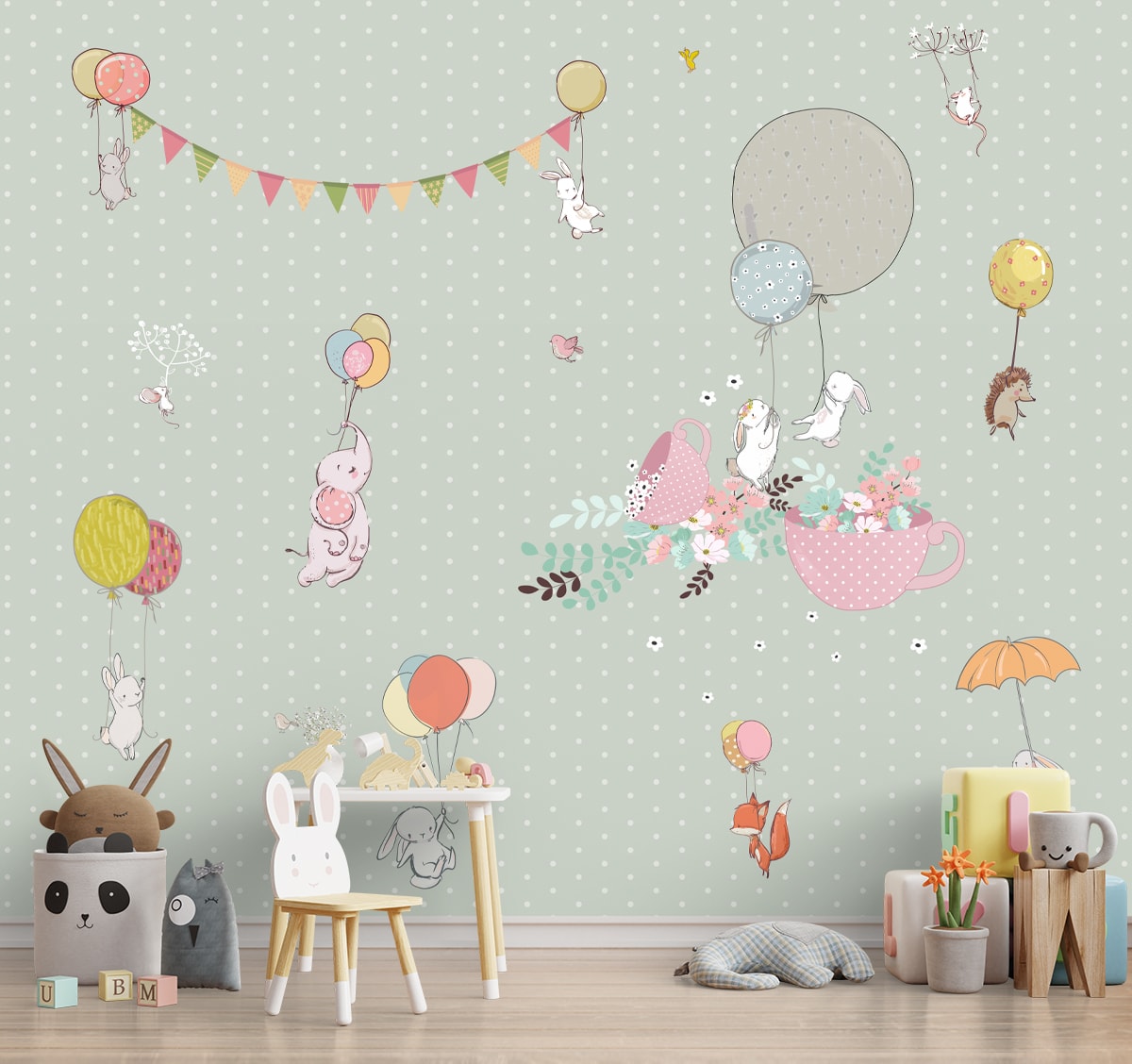 Green Beautiful Flying Animals Kids Room Customised Wallpaper | Custom made | Clear & vibrant prints | Easy to maintain | Life n Colors | Made in India