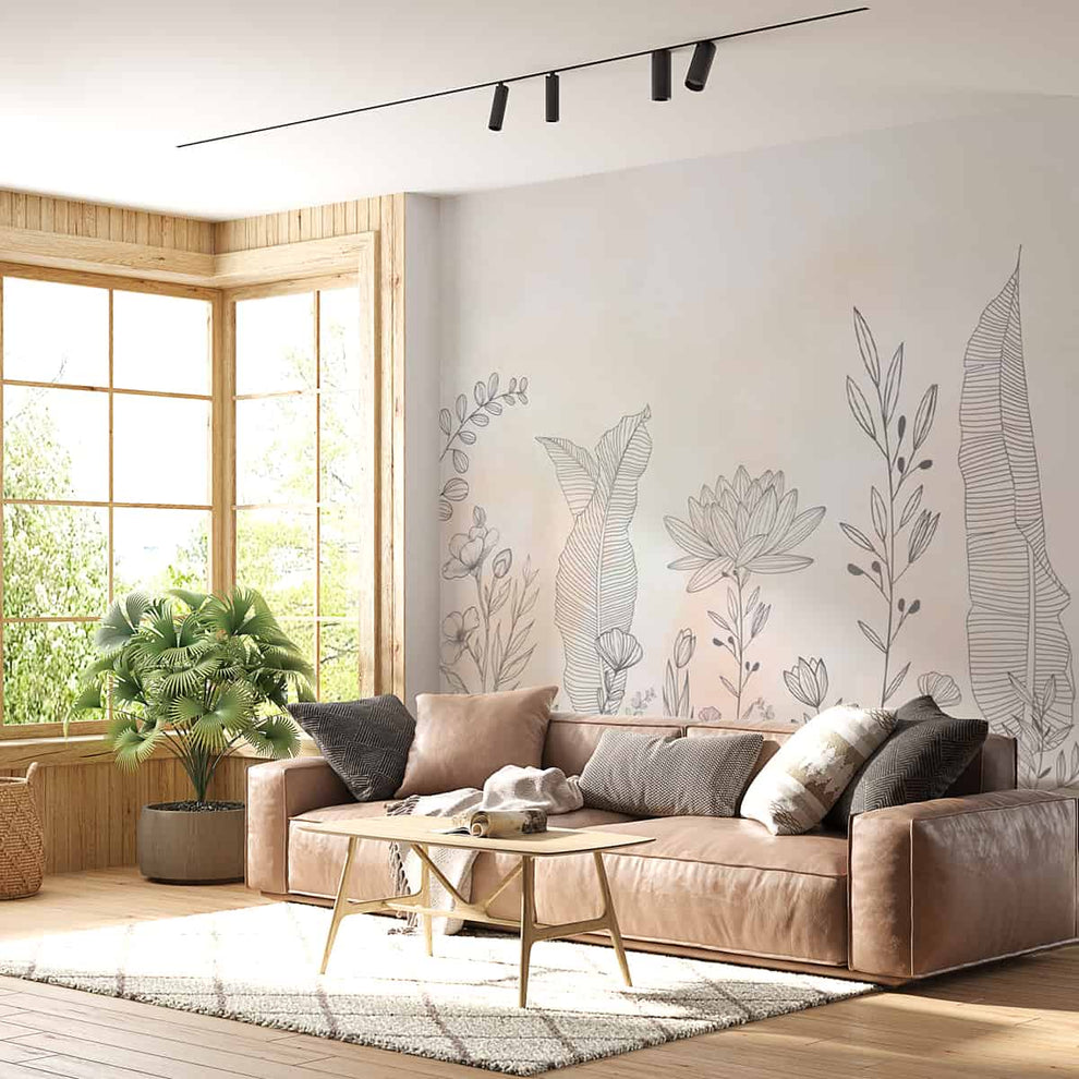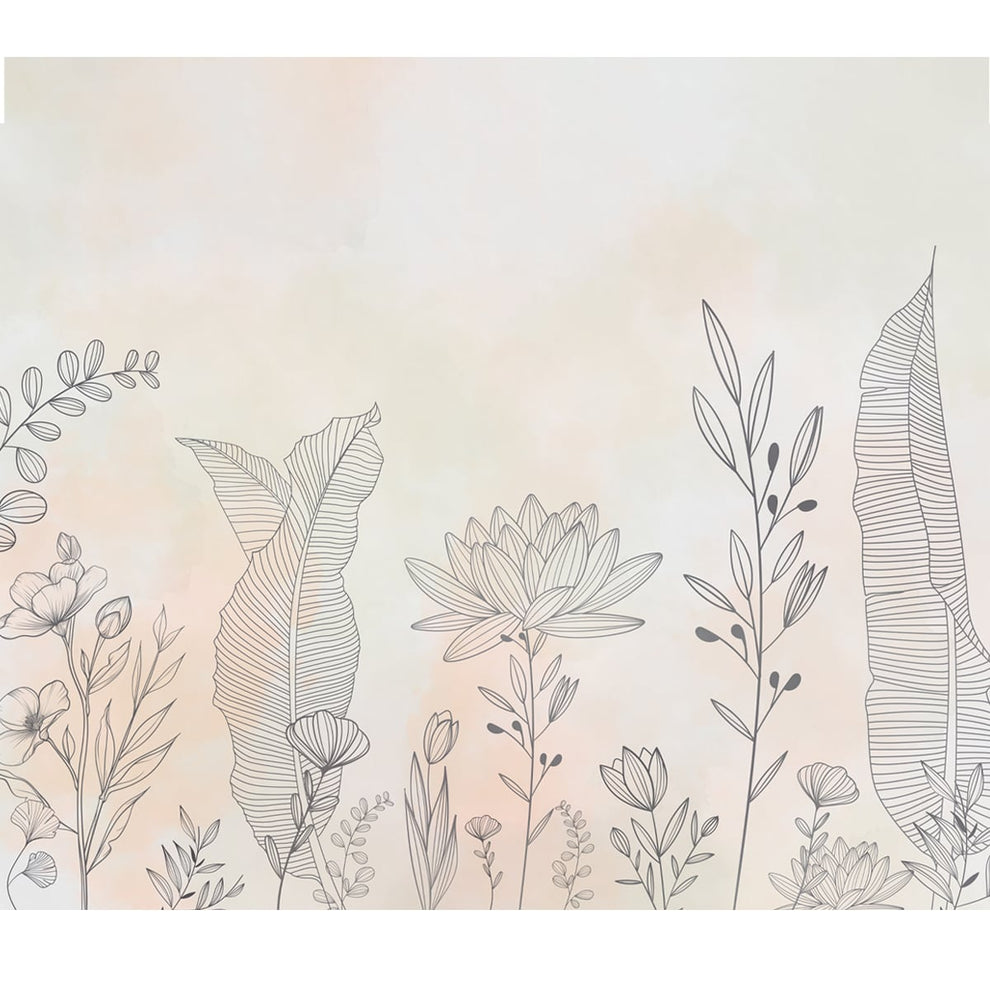 Blush & Bloom Line art Floral Wallpaper Customised.