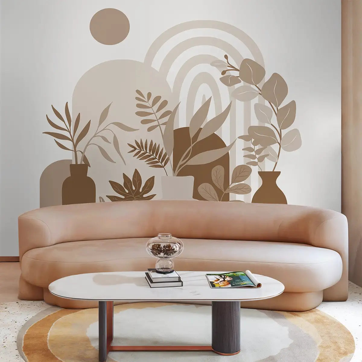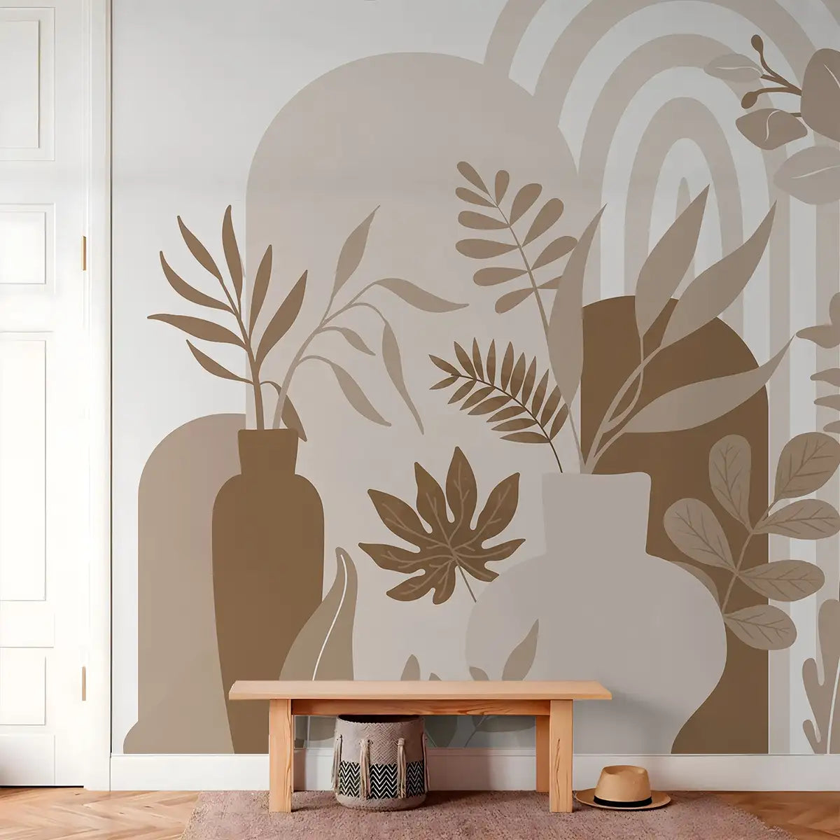 Boho Botanica Abstract Sepia Tone Customised Wallpaper for Rooms