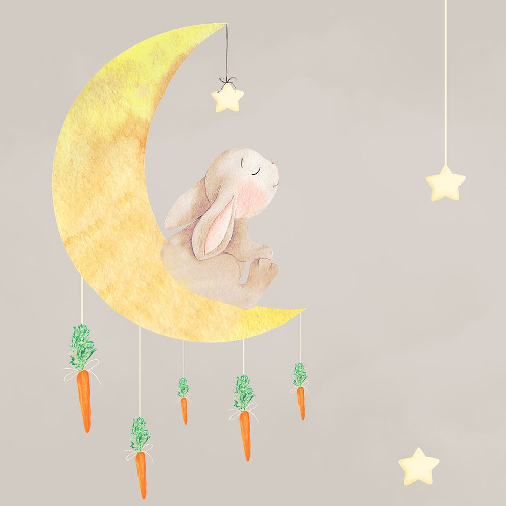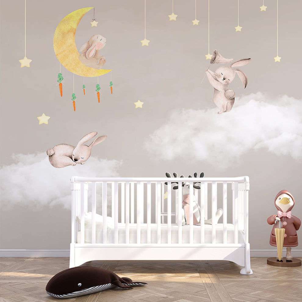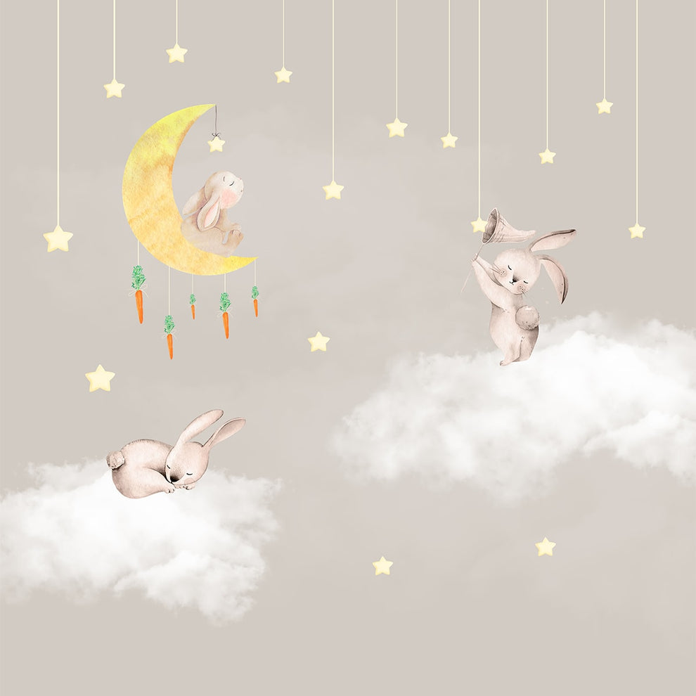Bunnies in Sky: Kids Room Wallpaper, Beige | Custom made | Clear & vibrant prints | Easy to maintain | Life n Colors | Made in India