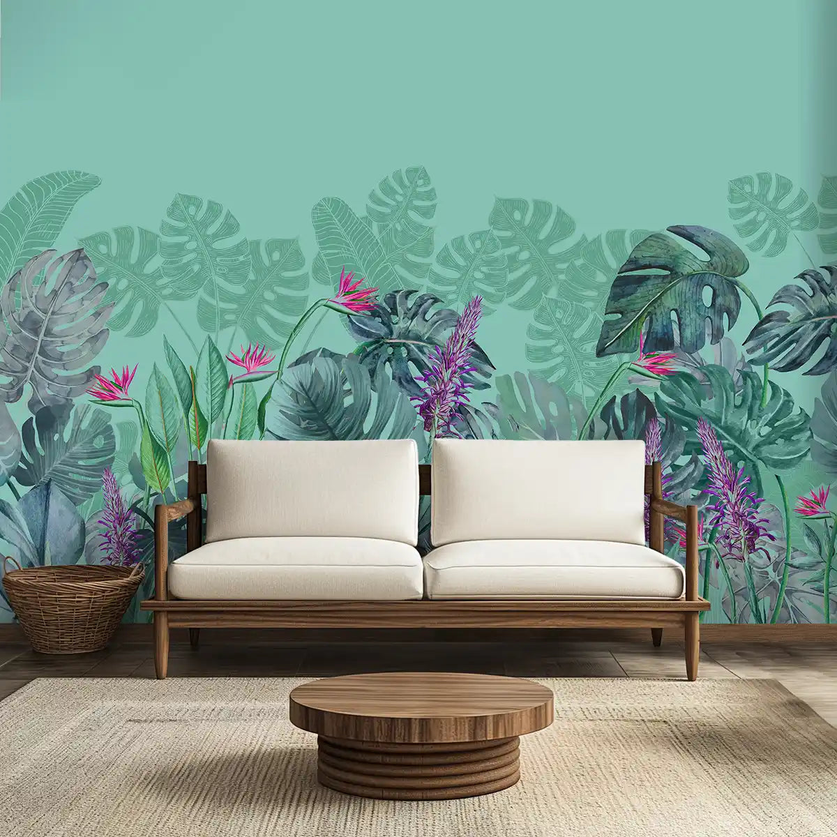 Charm, Nature Theme Based Tropical Wallpaper, Customised Teal