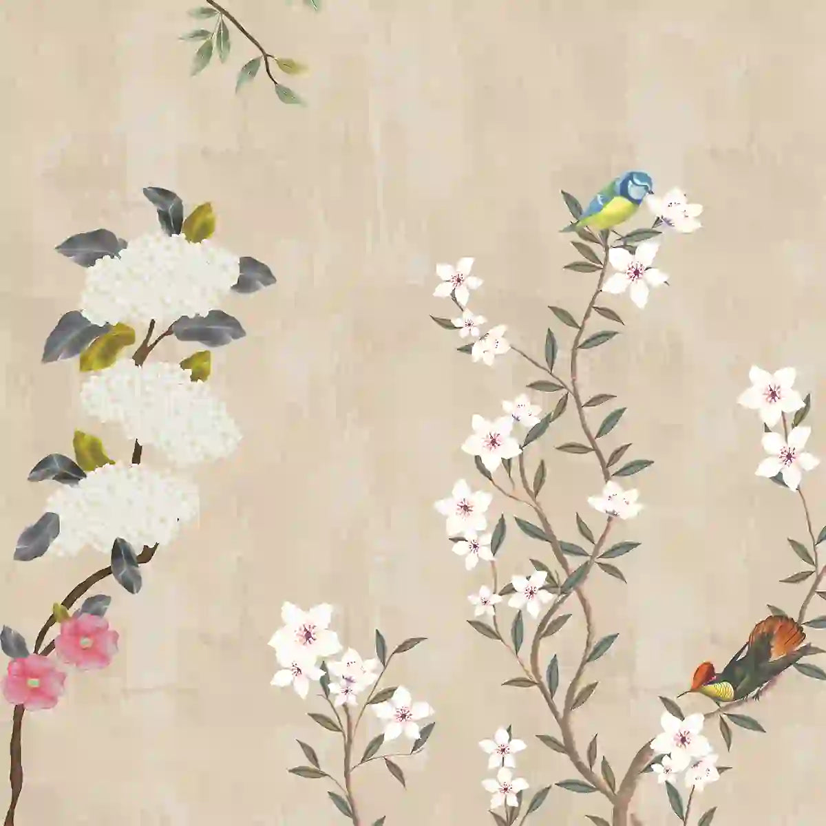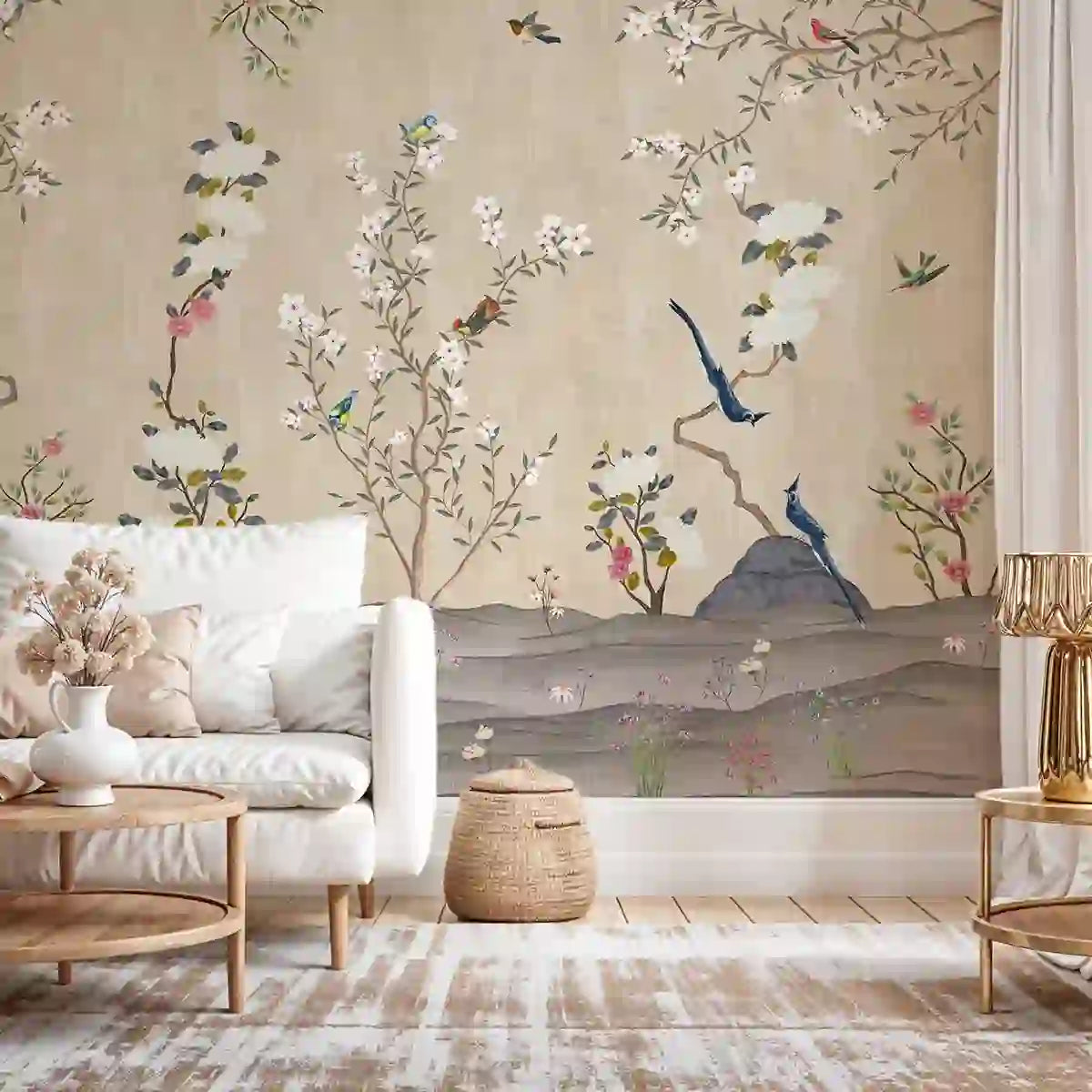 Pakhi Chinoiserie Design Customised Wallpaper for Rooms, Beige
