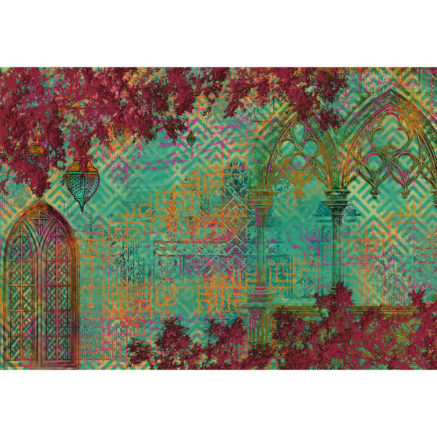 Customised Quirky Abstract Mughal Themed Wallpaper | Custom made | Clear & vibrant prints | Easy to maintain | Lifencolors | Made in India