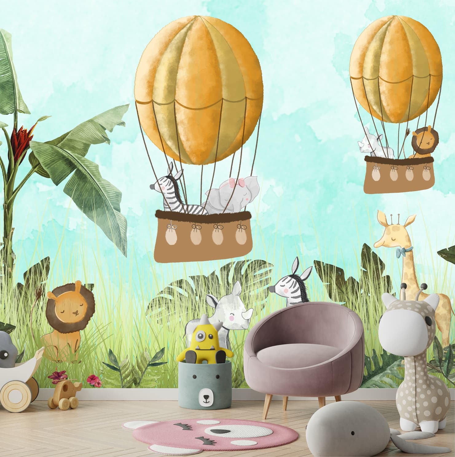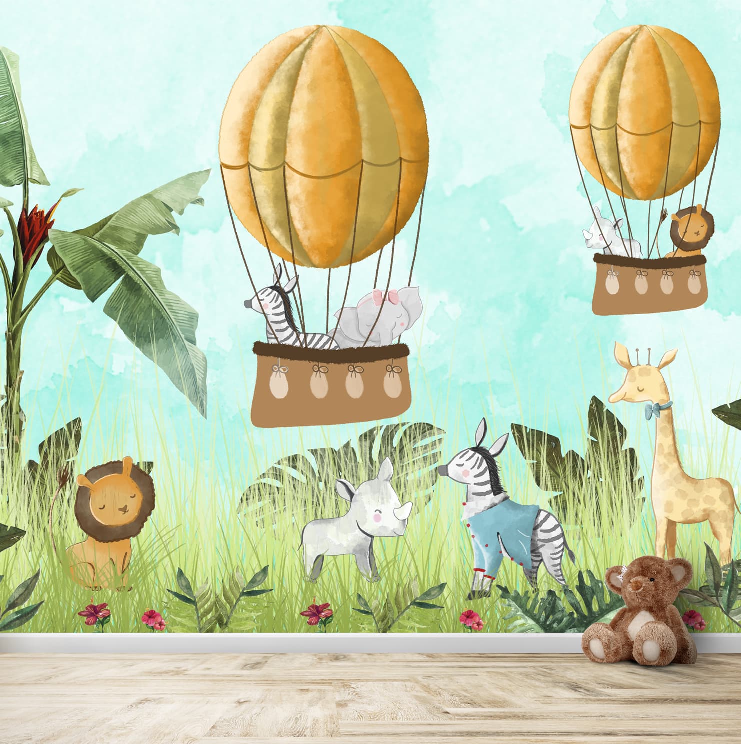 Cute Jungle Animals in Balloon Wallpaper, Customised