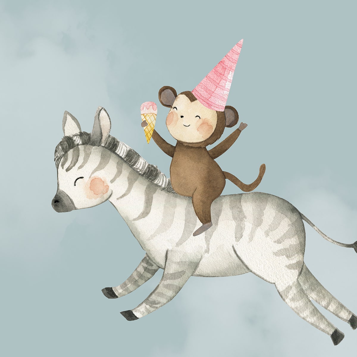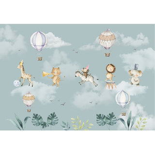Cute Jungle Animals Wallpaper for Kids Room Nursery, Customised, Blue | Custom made | Clear & vibrant prints | Easy to maintain | Life n Colors  | Made in India