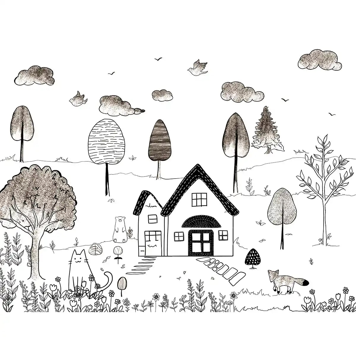 Cute Kids Room Pencil Sketch Theme Wallpaper | Custom made | Clear and vibrant prints | Eco-friendly and non-toxic | Easy to maintain | Life n Colors | Made in India