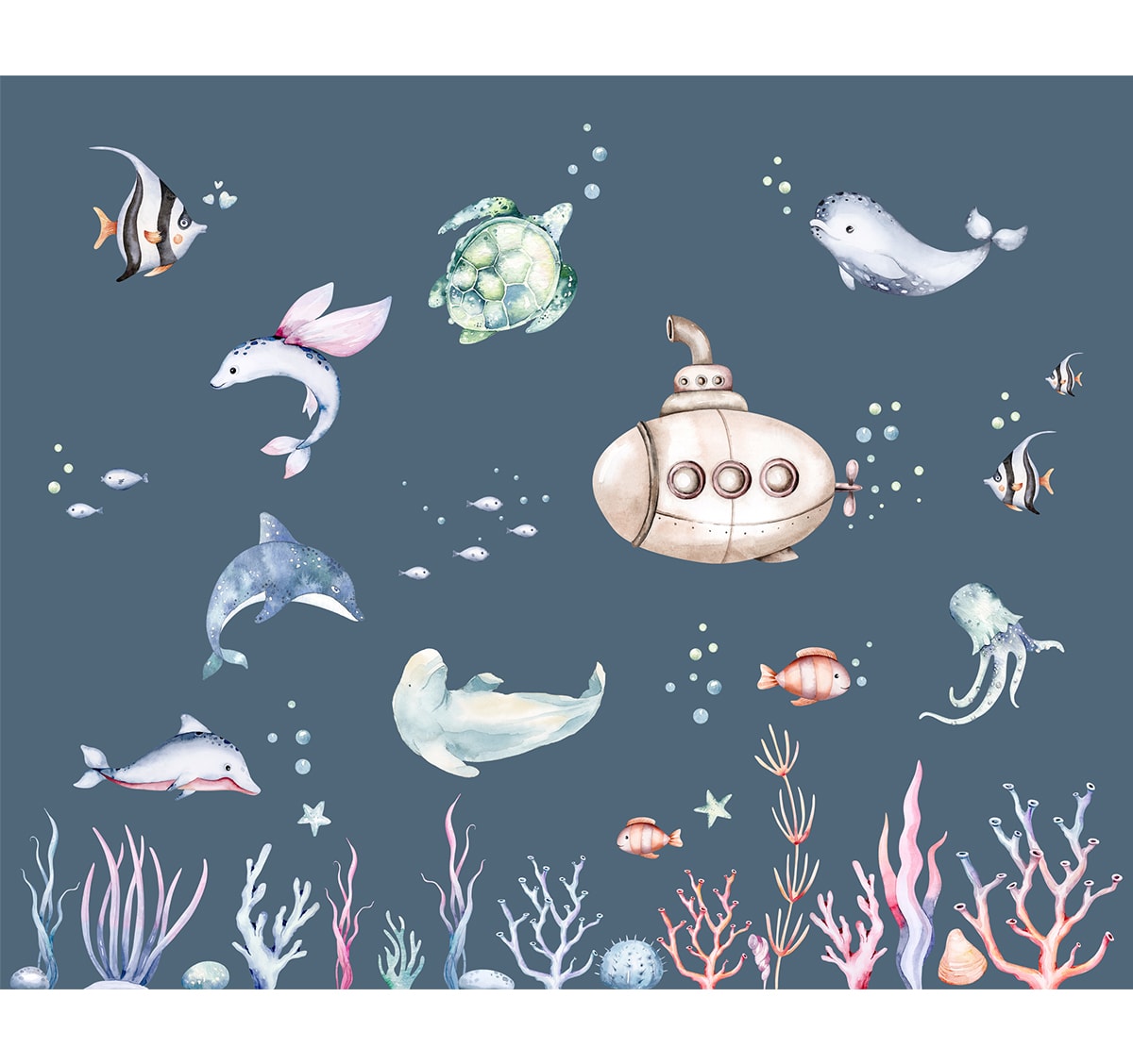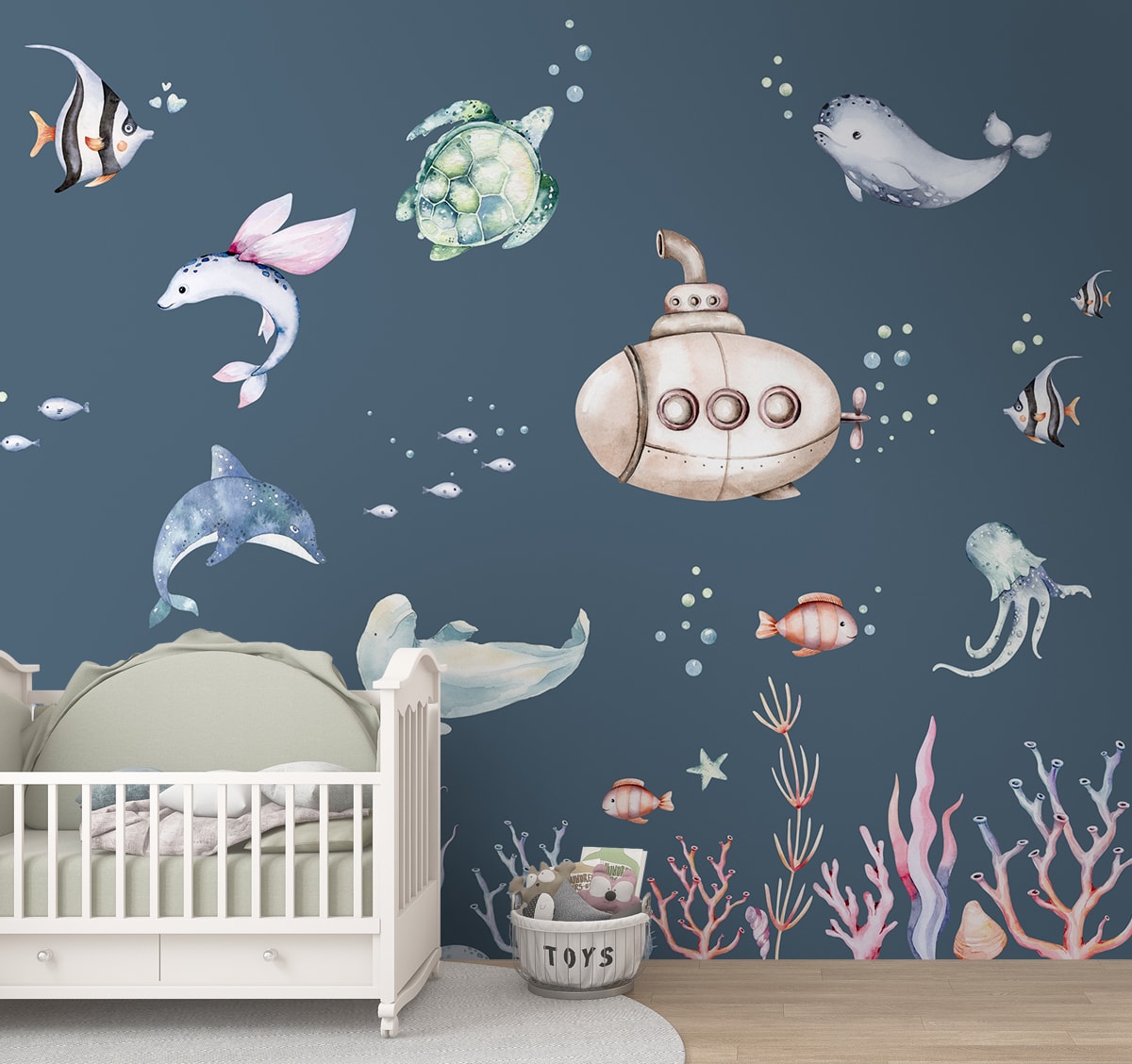 Cute Marine Life Customised Wallpaper Design for Kids Room | Custom made | Clear & vibrant prints | Easy to maintain | Life n Colors | Made in India