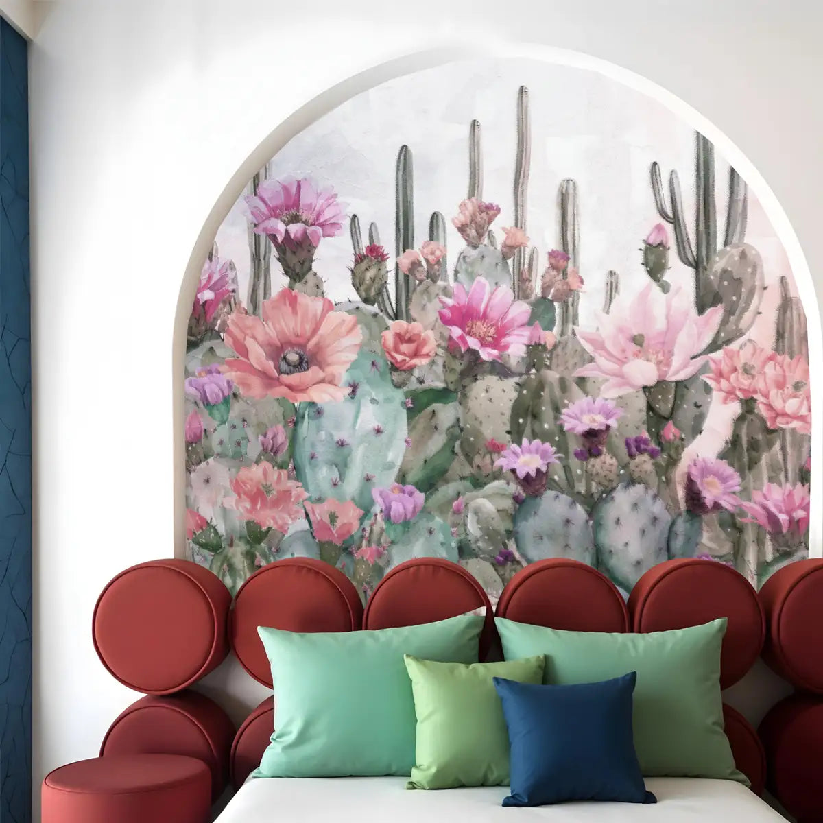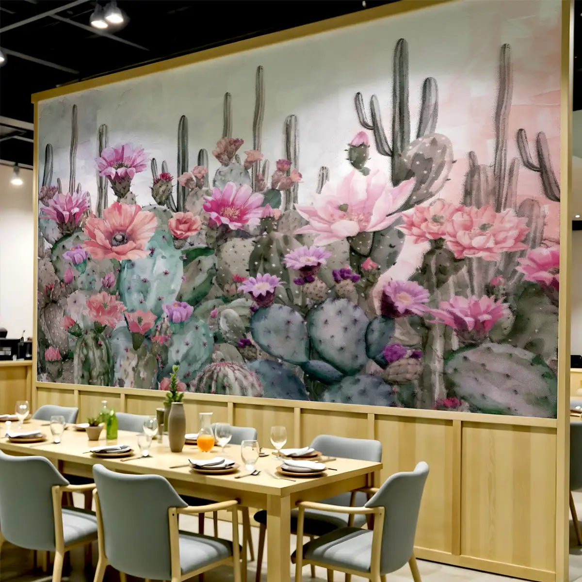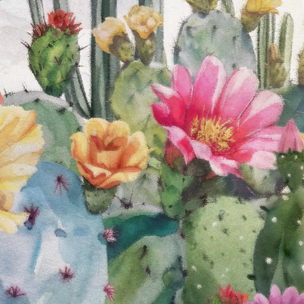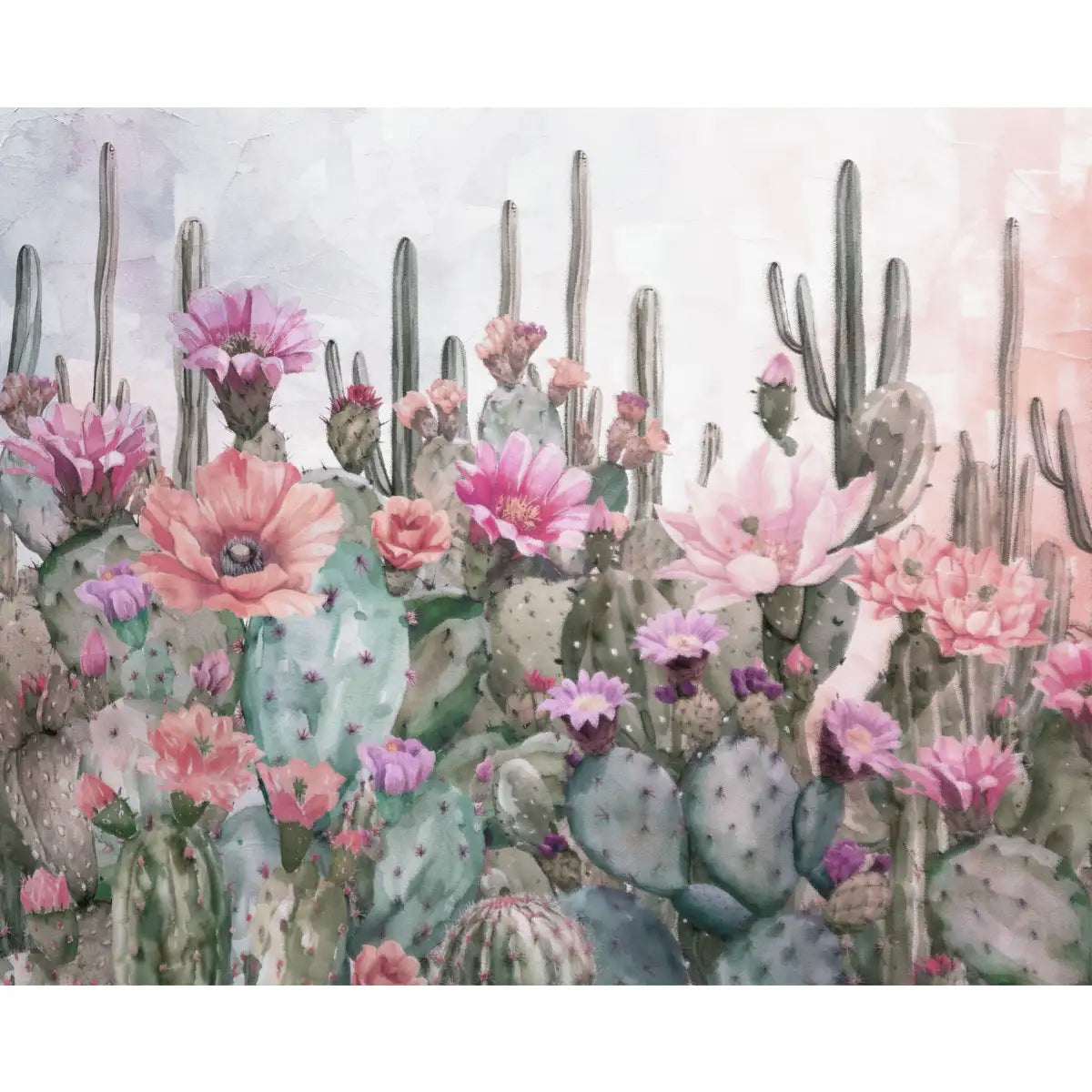 A dreamy vision of cacti and wildflowers, blending arid landscapes with painterly textures.