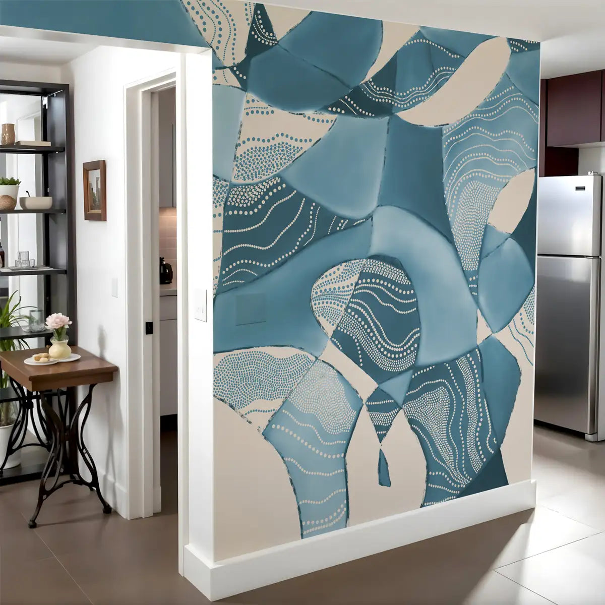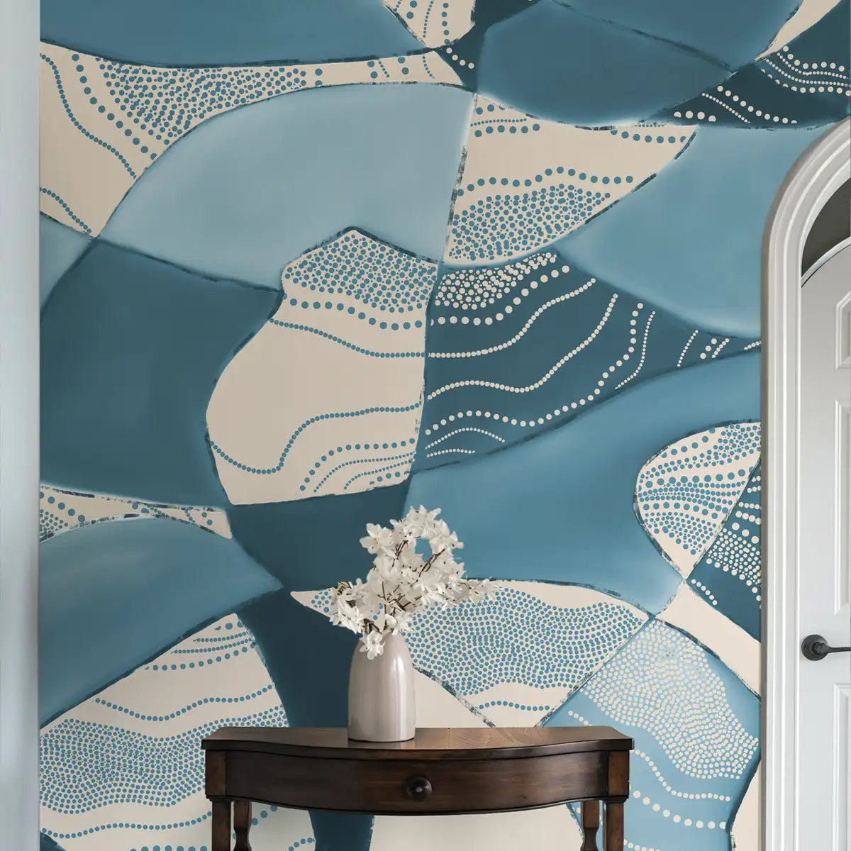 Earthen Mosaic Abstract Wallpaper in Light Blue Color, Customised