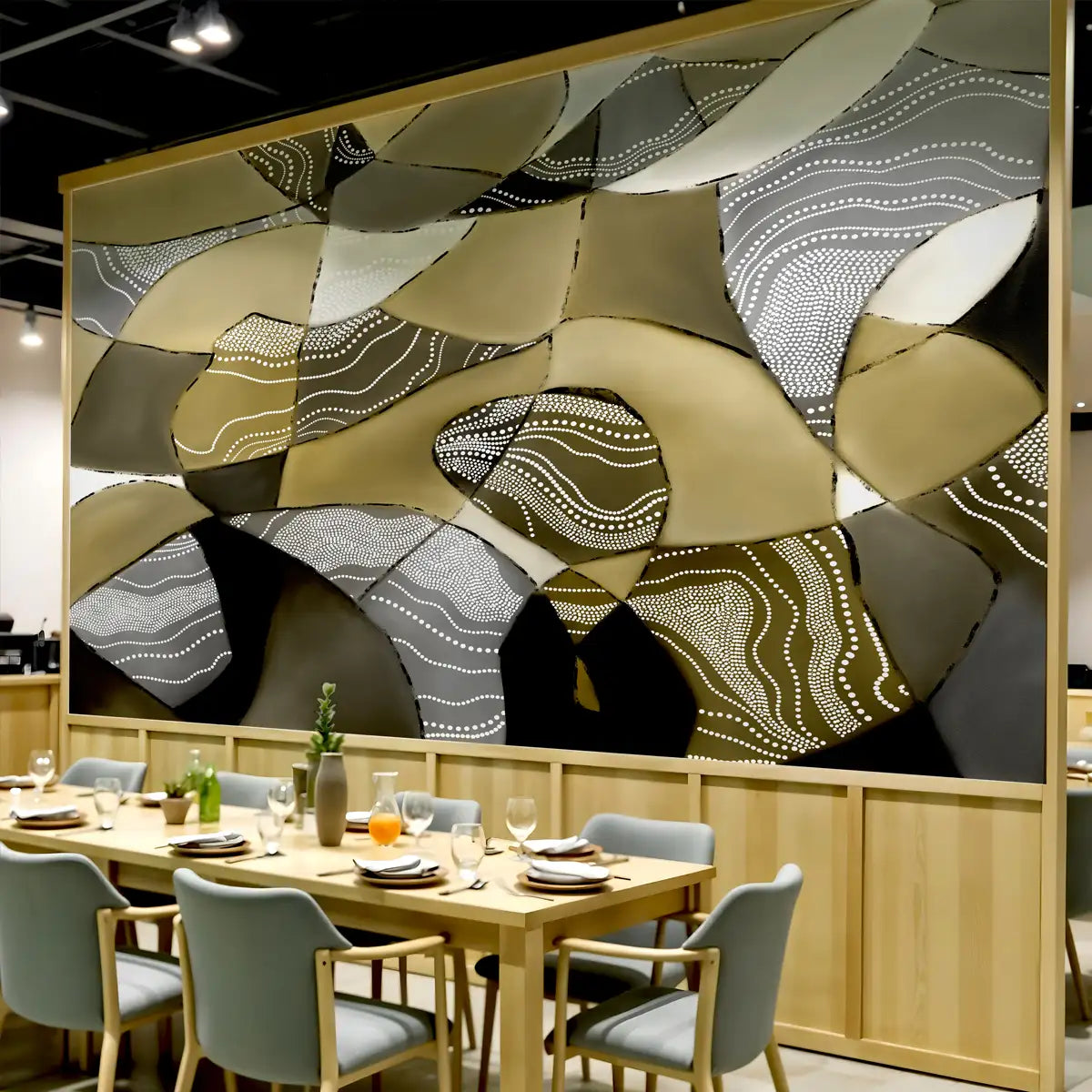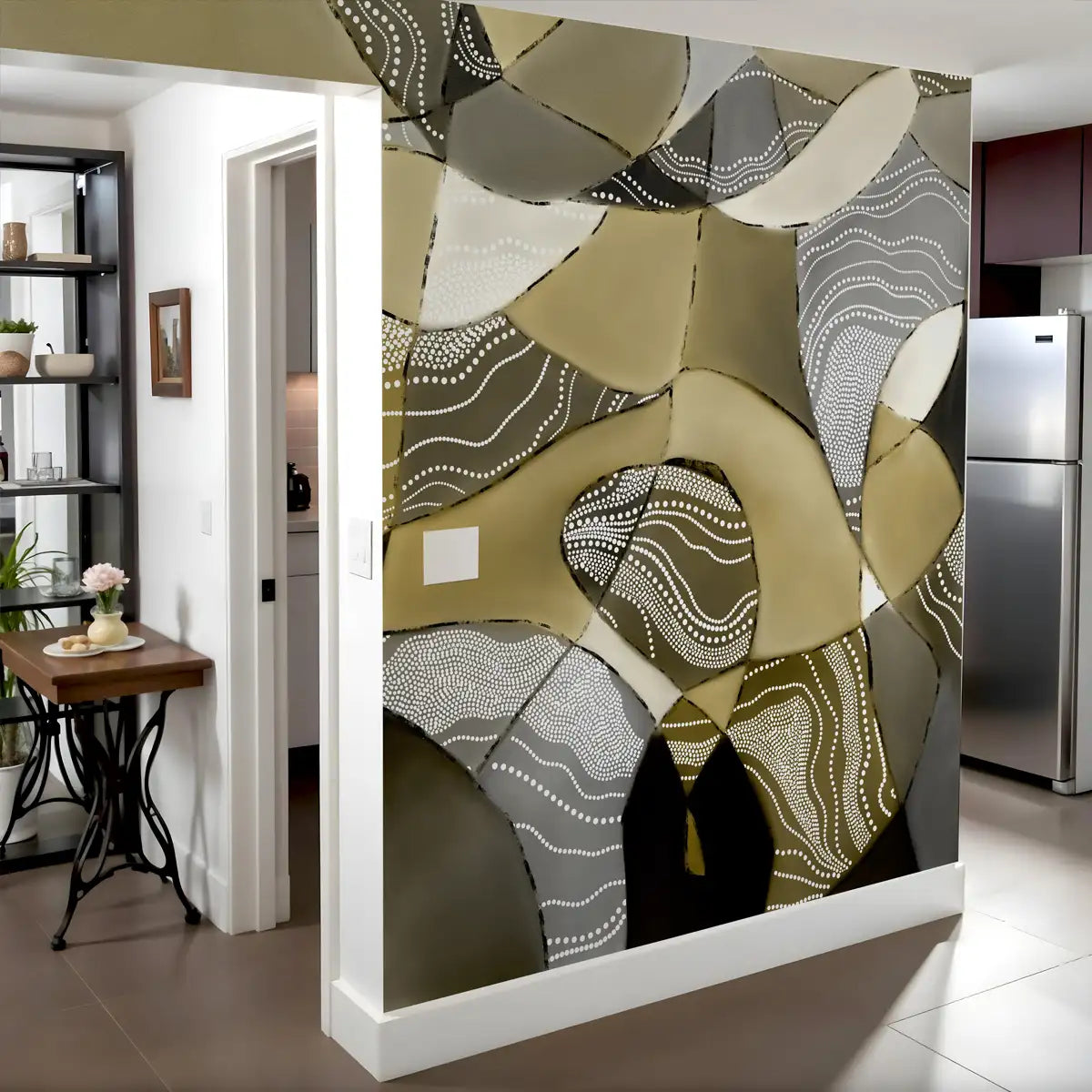 Earthen Mosaic Abstract Wallpaper in Olive Green Color, Customised