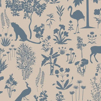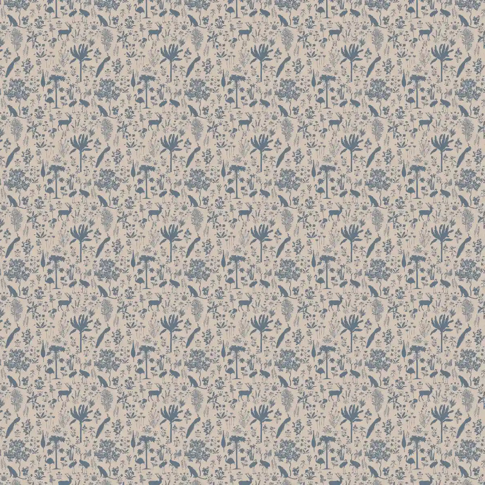 Flora n fauna Tropical Wallpaper Roll in Blue & Beige Color
