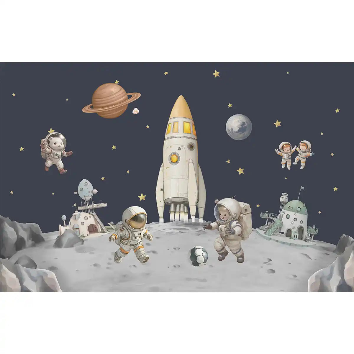 Galaxy of Dreams Kids Room Wallpaper — a fun, imaginative design that sparks curiosity about the cosmos. With rockets, planets and stars in playful detail, it's the perfect pick for bedrooms, nurseries and playrooms.
