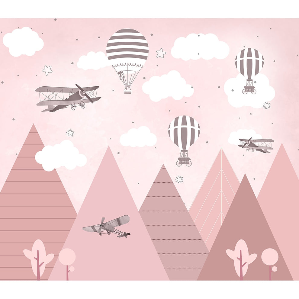 Gliders And Hot Air Balloons Wallpaper, Pink | Custom made | Clear & vibrant prints | Easy to maintain | Life n Colors | Made in India