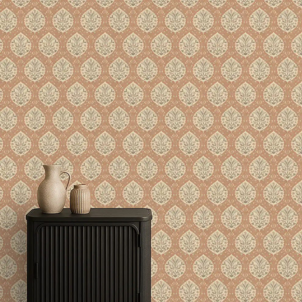 Gulmohar Indian Wallpaper Roll in Terracotta Color Living Room
