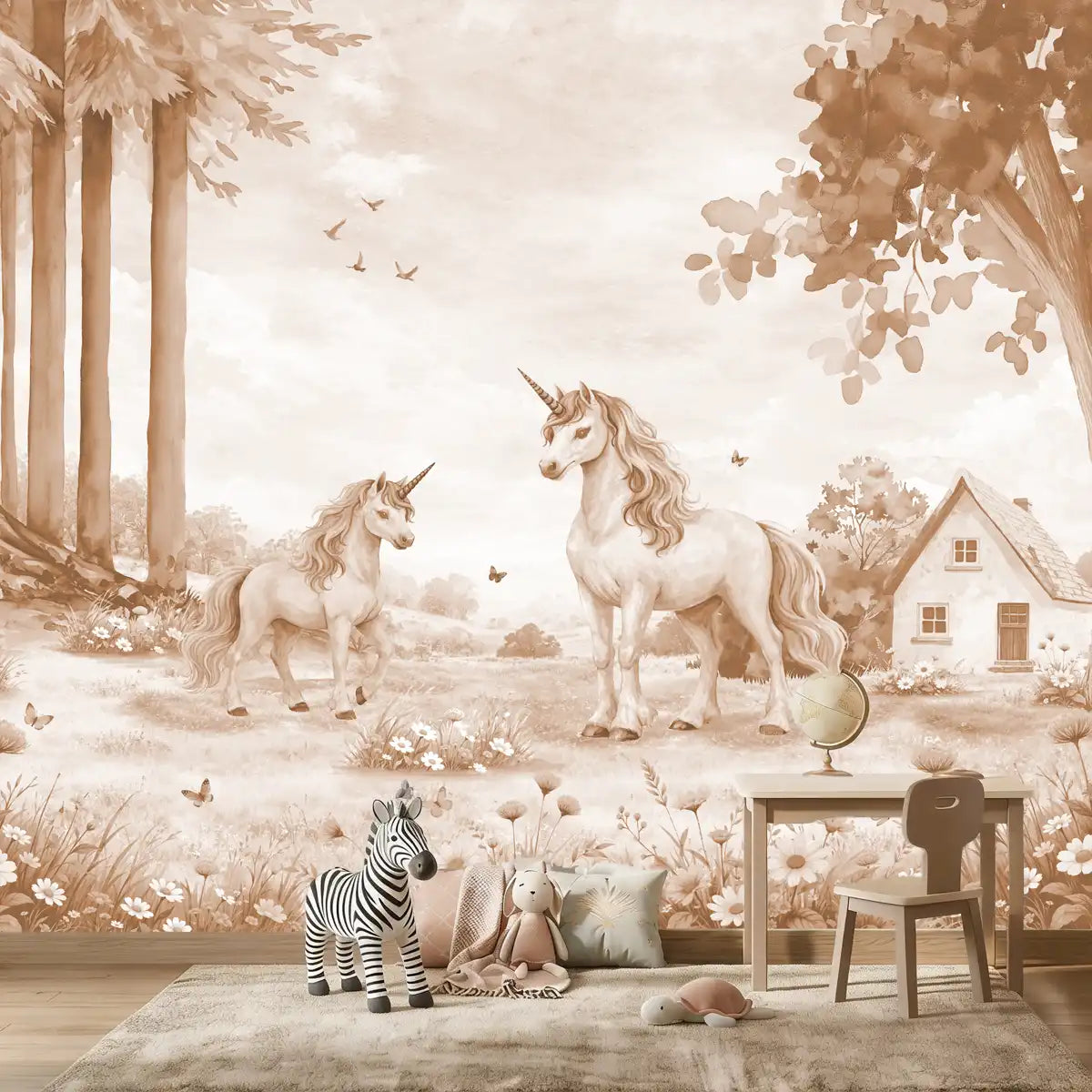 Horn of Wonders Rustwood Wallpaper — a delightful design that brings warmth and imagination to kids' spaces. Playful details and soft colours make it ideal for nurseries, bedrooms and playrooms.