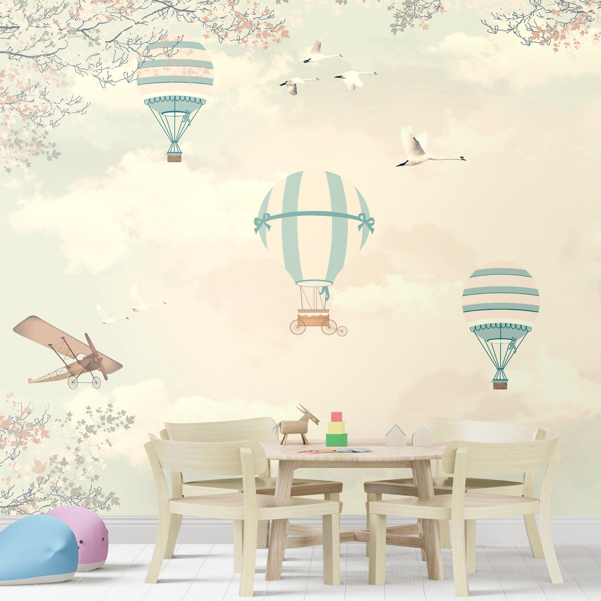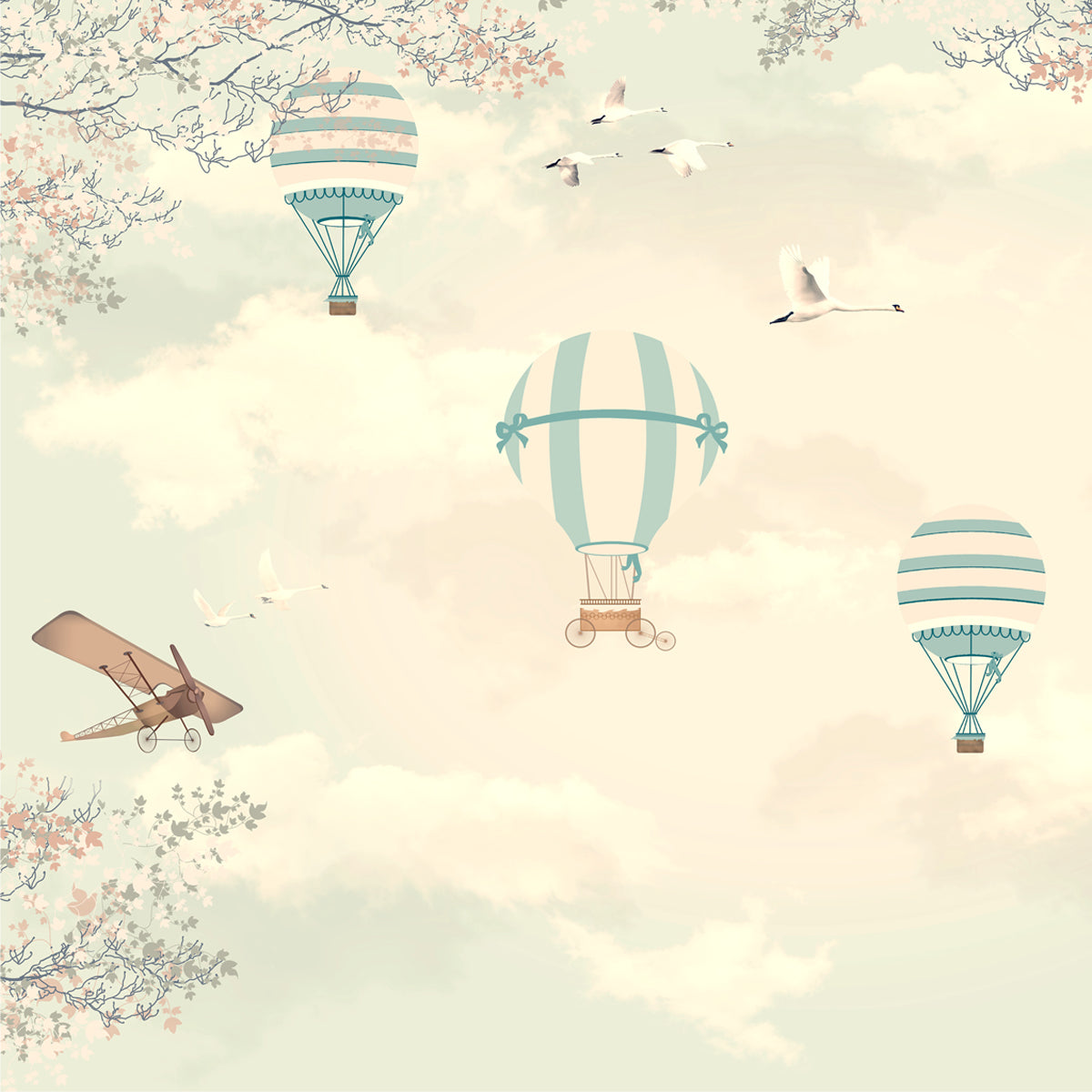 Balloons & Gliders Pastel Colors Children Room Wall Paper, Customised